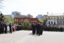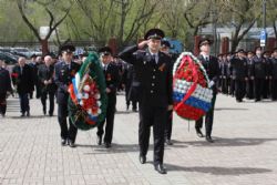 Открывая митинг, начальник УМВД России по Приморскому краю генерал-майор полиции Николай Афанасьев отметил: «Сотрудники органов внутренних дел внесли достойный вклад в общее дело Победы в Великой Отечественной войне. Многие из них погибли на поле боя. Более полутора тысяч сотрудников милиции Приморья защищали Родину на полях сражений Великой Отечественной. Двое из них удостоены звания Героя Советского Союза».