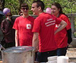 В Покровском парке Владивостока добровольцы Епархиальной службы «Милосердие» и прихожане Покровского кафедрального собора провели мероприятия для ветеранов и горожан, помогали с раздачей «фронтовой» каши и праздничным чаепитием.