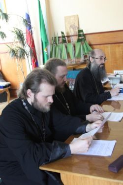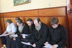 Владивосток. Заседание подагогического совета возглавил директор Духовного Центра подготовки церковных специалистов митрополит Владивостокский и Приморский Вениамин. В принимали участие заместитель директора по административной работе епископ Иннокентий, викарий Владивостокской епархии, заместитель директора по учебной работе протоиерей Ростислав Мороз, преподаватели Центра.