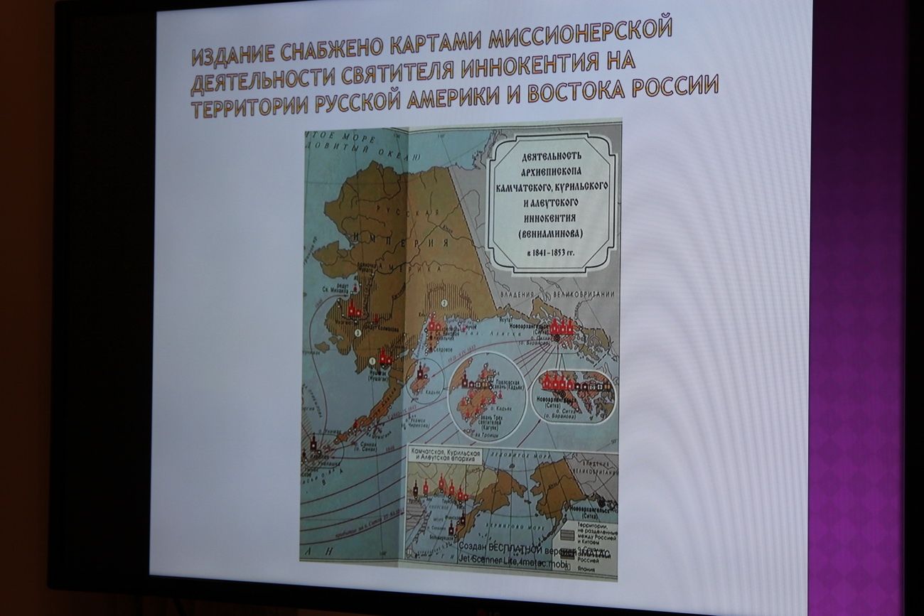 - Эта находка не успела войти в семитомник. Наследие святителя Иннокентия (Вениаминова) по-прежнему не изучено в достаточной степени. Архивы Иркутска, Благовещенска, Якутска, Вашингтона, Джуно, острова Кадьяк и Алеутских островов хранят множество непрочитанных страниц нашей истории, достойных публикации и исследования. Собрание сочинений святителя Иннокентия (Вениаминова) — это совместный проект Якутской и Ленской епархий и Издательства Московской Патриархии Русской Православной Церкви. Книги, представленные на презентации – это подарок архиепископа Якутского и Ленского Романа. Святитель Иннокентий много сделал для развития Якутии, и в том регионе его очень почитают.