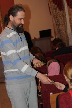 Завершая встречу, епископ Иннокентий подарил собравшимся иконки святителя.