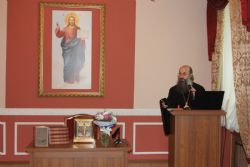 Мероприятие приурочено к 220-летию со дня рождения и 40-летию канонизации святителя Иннокентия, апостола Сибири и Америки. Открыла презентацию Ирина Степановна Латышева, администратор дополнительного образования Духовного центра. Она кратко рассказала о святителе и о его роли в становлении Православия в Приморье.