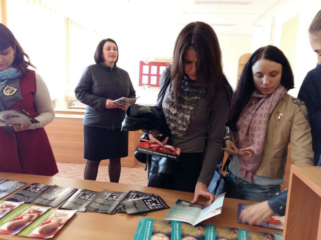По благословению настоятеля храма Вознесения Господня митрофорного протоиерея Владимира Капитанюка в этом мероприятии приняли участие Ирина Юрьевна Карайбеда и Елена Гавриловна Федун, ответственные за молодёжную и социальную работу на приходе. После доклада врача городской женской консультации представители прихода храма Вознесения Господня с. Спасское Ирина Юрьевна и Елена Гавриловна показали девушкам фильм о вреде гормональной контрацепции и рассказали о целомудрии и духовных аспектах абортов, беспорядочных связей. Студенткам предложили буклеты о вреде абортов и гормональной контрацепции и православный журнал "Душа".
