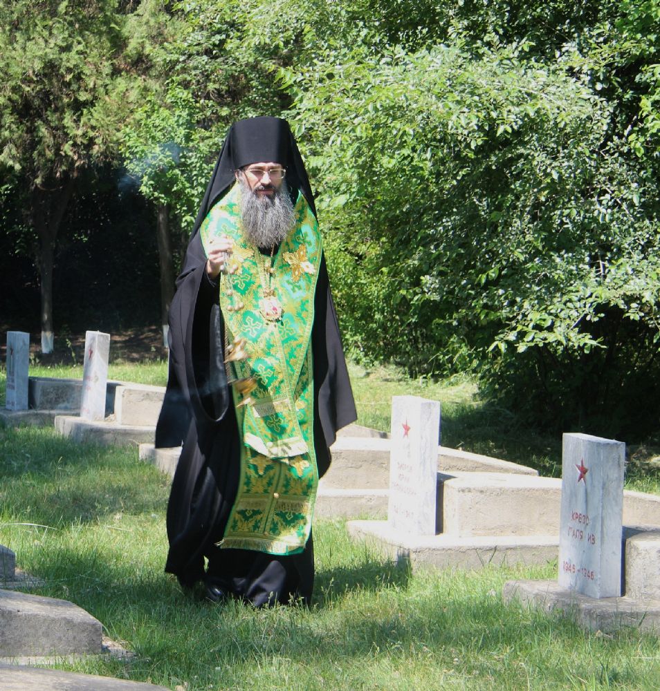 В Троицкую родительскую субботу епископ Иннокентий совершил панихиду перед Поклонным крестом, установленным на кладбище в районе Садон г. Пхеньяна — в память о соотечественниках, советских воинах и гражданских лицах. На поминальном богослужении присутствовали сотрудники Посольства России в КНДР во главе с послом А.И. Мацегорой.