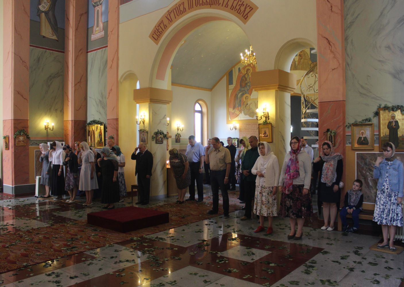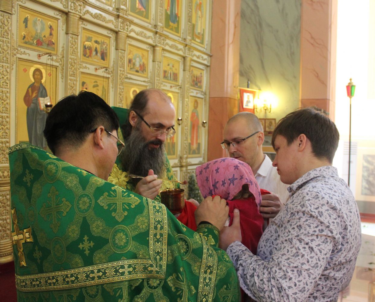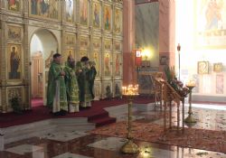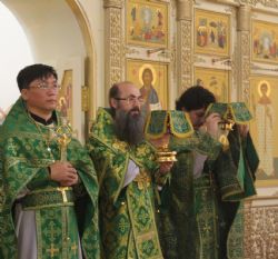 В неделю 8-ю по Пасхе, День Святой Троицы, в Свято-Троицком храме владыка Иннокентий возглавил служение праздничной Литургии и вечерни, по завершении которой обратился к присутствующим с архипастырским словом, отметив, в частности, духовное значение празднования Пятидесятницы. Архипастырю также сослужил настоятель Свято-Троицкого храма иерей Феодор Ким. Храм посетили православные верующие из числа сотрудников посольства России в КНДР, а также других дипломатических миссий, находящихся в городе.