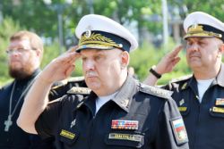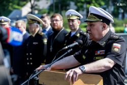 Помощник командующего ТОФ, настоятель военно-морского Андреевского храма на Корабельной набережной Владивостока иерей Сергий Галанов обратился к экипажу и членам семей с приветственным словом: