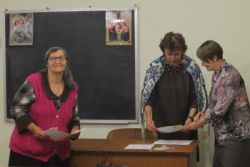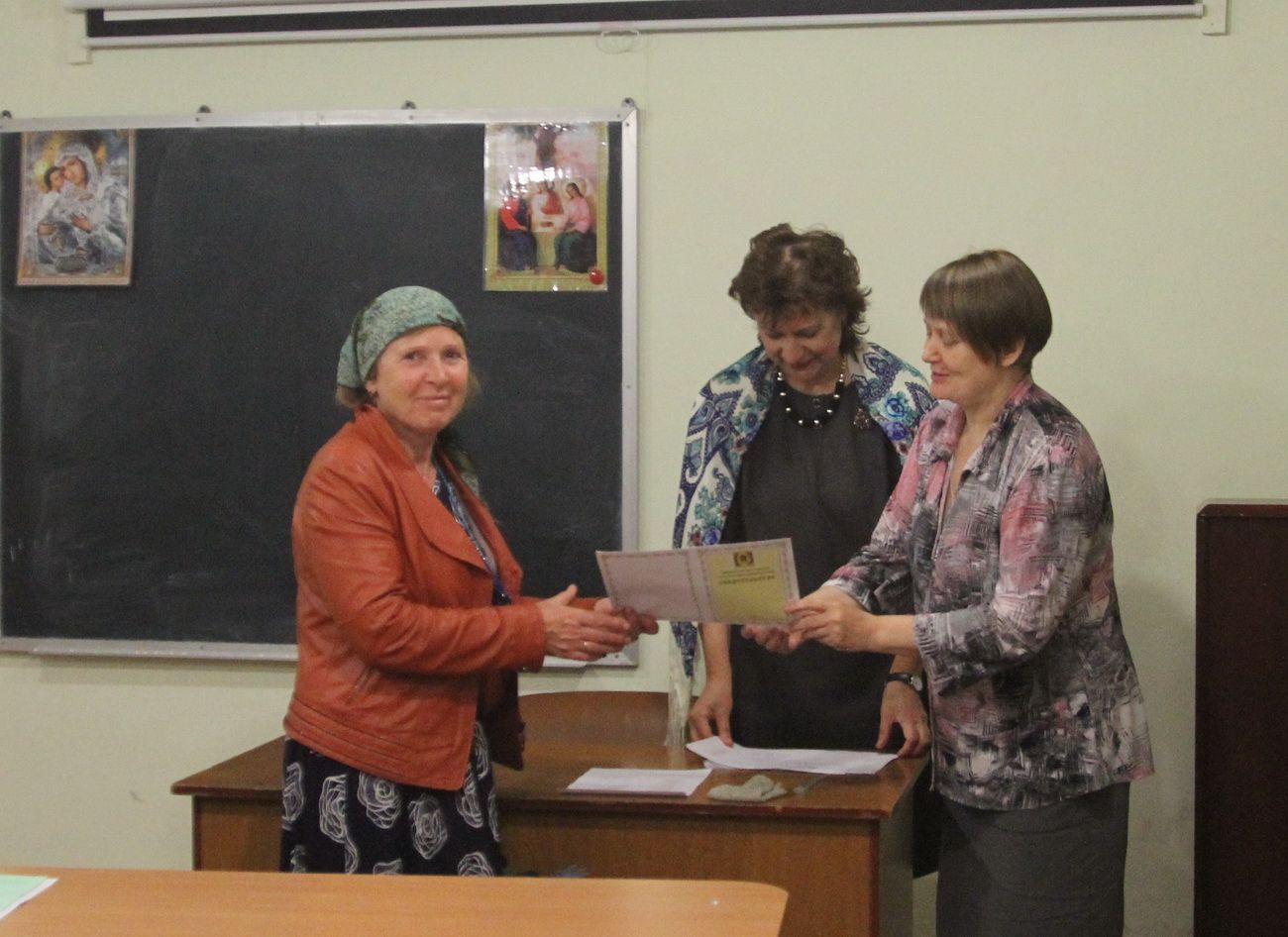Руководитель Катехизических курсов, специалист епархиального отдела религиозного образования и катехизации Ирина Степановна Латышева тепло поздравила своих студентов и пожелала им во всём полагаться на Бога и продолжать самообразование. А если будет возможность и желание – продолжить учёбу в Духовном центре.