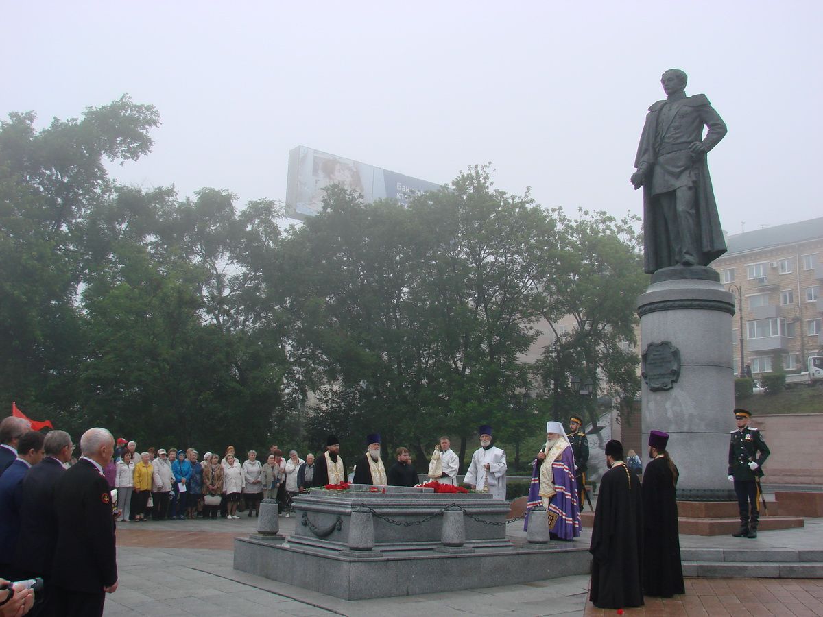 Владивосток. 30 июня 2017 года, у памятника генерал-губернатору Николаю Николаевичу Муравьеву-Амурскому состоялась торжественная церемония возложения цветов, посвящённая 157-летию столицы Приморья. На акции присутствовали и.о. главы города Константин Межонов, чиновники, ветераны, казаки, горожане. По окончании акции митрополит Владивостокский и Приморский Вениамин совершил заупокойную литию по усопшему рабу Божиему Николаю Муравьёву-Амурскому. Его Высокопреосвященству, Высокопреосвященнейшему Владыке сослужили благочинный I округа епархии протоиерей Димитрий Федорин, руководитель епархиального отдела по взаимодействию с вооружёнными силами, ключарь свято-Никольского кафедрального собора протоиерей Виктор Жильцов, помощник благочинного I округа, настоятель храма в честь святых новомучеников и исповедников Церкви Русской протоиерей Андрей Машанов, настоятель храма в честь св. Татианы протоиерей Максим Романенко, протодиакон Николай Наплавков.