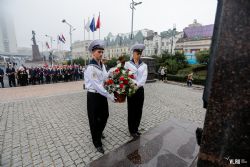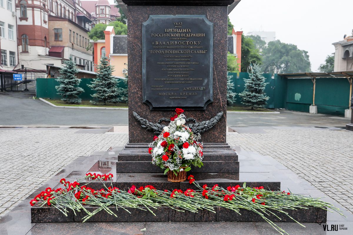 Далее участники акции возложили цветы к памятникам первому старосте города Якову Семёнову и к стеле «Владивосток – город воинской славы».