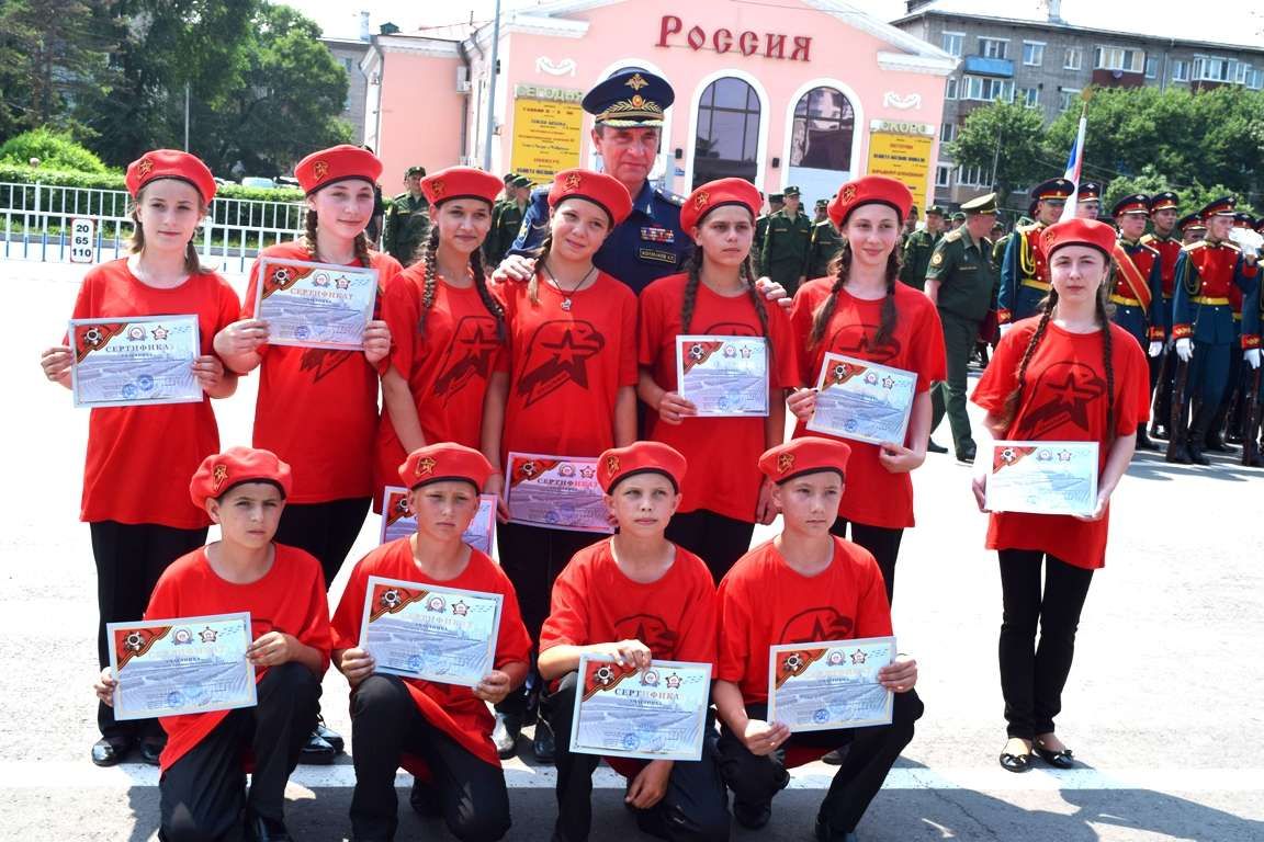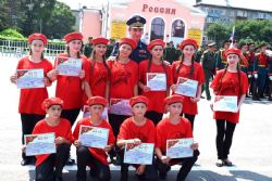 Далее состоялось торжественное вручение юнармейцам дипломов об участии в параде, посвящённом 72-ой годовщине Победы в Великой Отечественной войне, концерт и выступление военных.