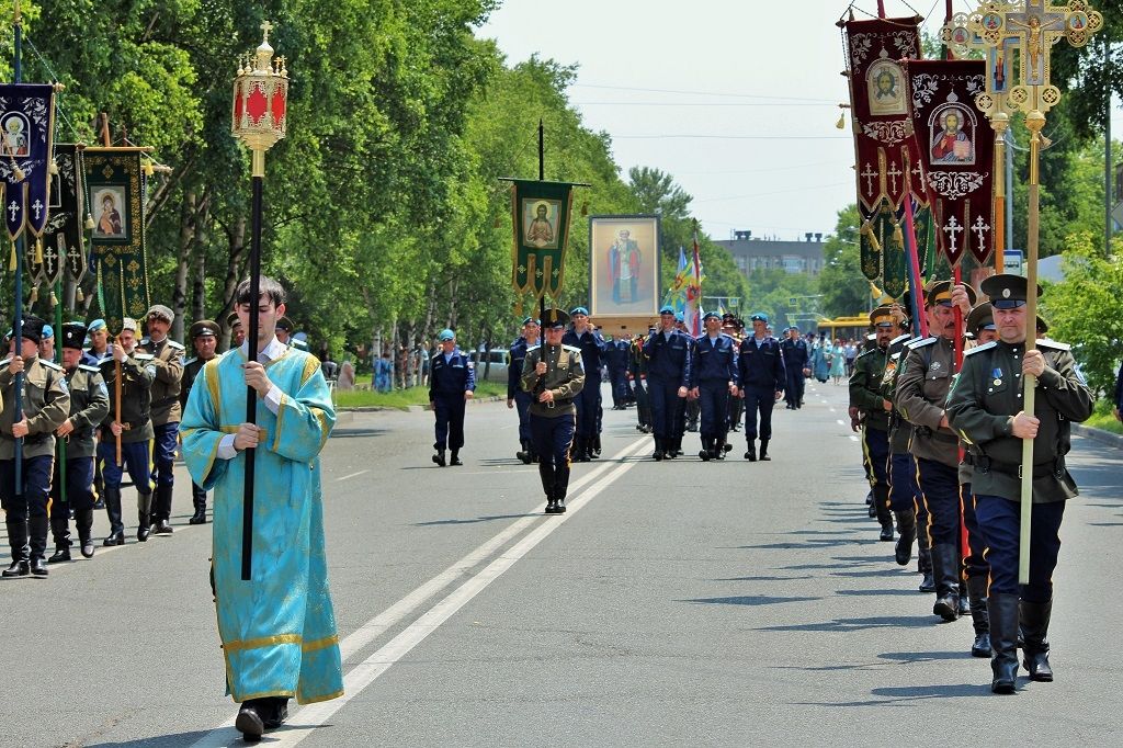 Возглавили крестный ход благочинный I округа протоиерей Димитрий Федорин, благочинный II округа, ключарь храма Покрова Пресвятой Богородицы города Уссурийска, протоиерей Сергий Якутов; благочинный III округа протоиерей Евгений Маляр. На центральной площади города Крестный ход встретил митрополит Владивостокский и Приморский Вениамин. Митрополит Вениамин совершил молебен и обратился с архипастырским словом к участникам автопробега и горожанам: