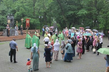 Владивосток. 8 июня 2017 г., в субботу, во всероссийский День семьи, любви и верности в храмах епархии почтили память благоверных князей Петра и Февронии Муромских. В Покровском кафедральном соборе в эти дни прошёл ряд мероприятий, приуроченных к празднеству. 8 июня состоялась Божественная литургия, молебен и крестный ход к памятнику святым Петру и Февронии на территории городского парка. Ключарь собора протоиерей Александр Талько у монумента окропил святой водой прихожан и гостей и обратился к верующим с пастырским словом по случаю праздника. Священнослужители исполнили величание святым покровителям семьи. После Крестного хода в приходском духовно-просветительском центре состоялся просмотр православного фильма, беседа с психологом, чаепитие.