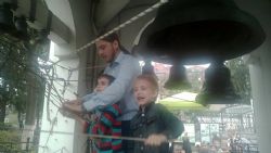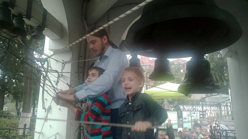 А затем под живую музыку гитары дети протоиерея Андрея Калчева – Елизавета, Софья и Даниил спели про Петра и Февронию. Концерт плавно перешёл в чаепитие со сладостями. К детворе присоединились взрослые слушатели и получилось настоящее семейное чаепитие. Детей из детского дома учили звонить в колокола.