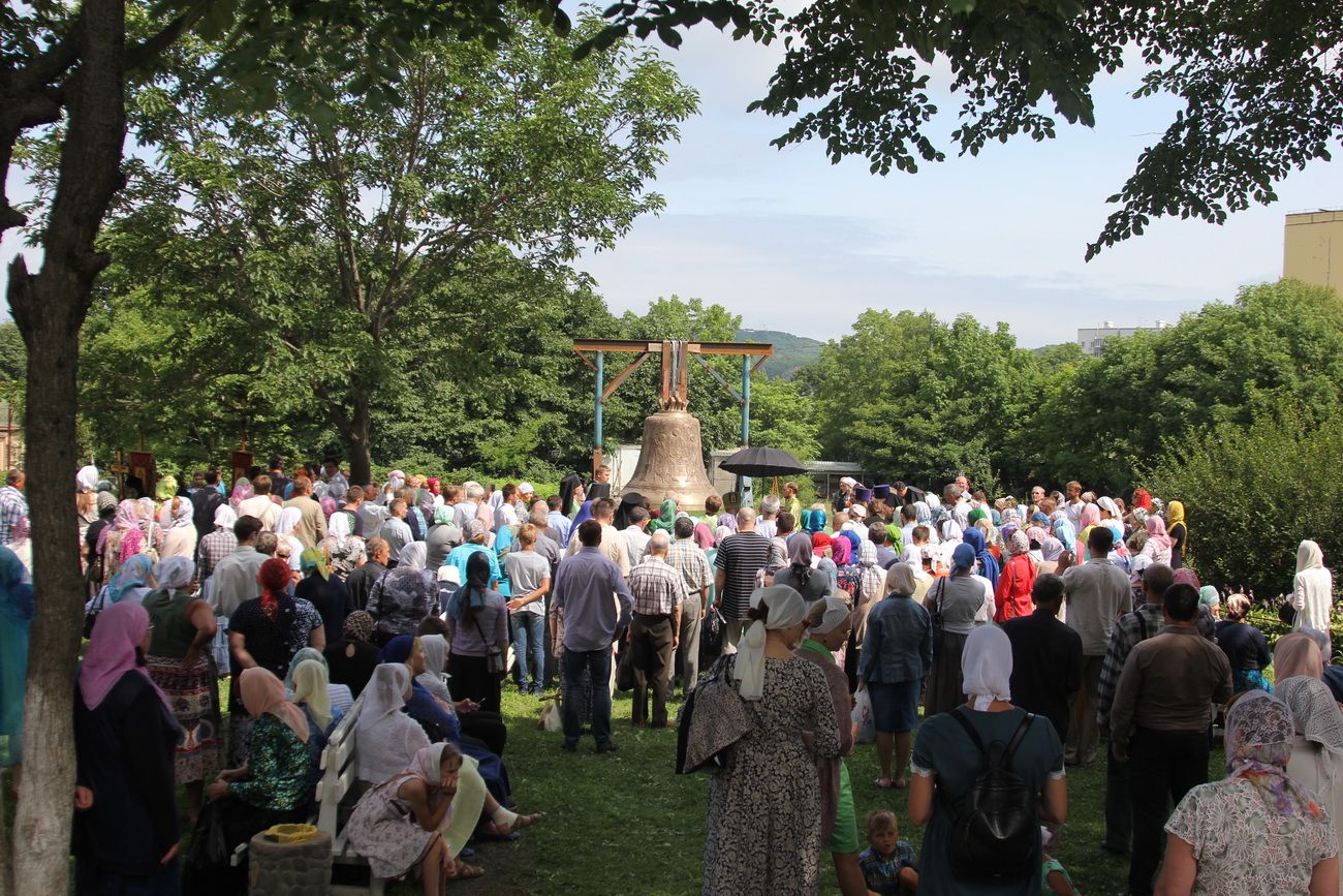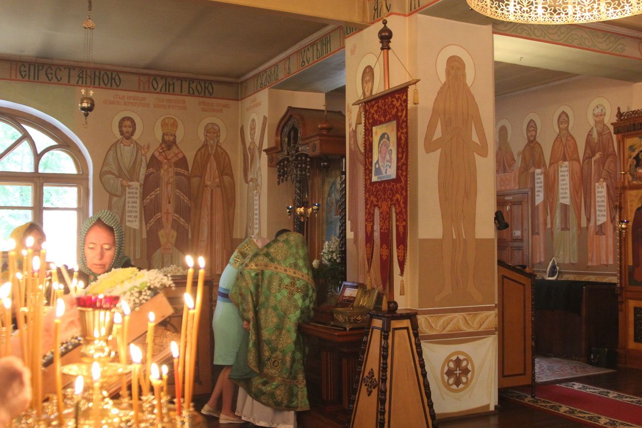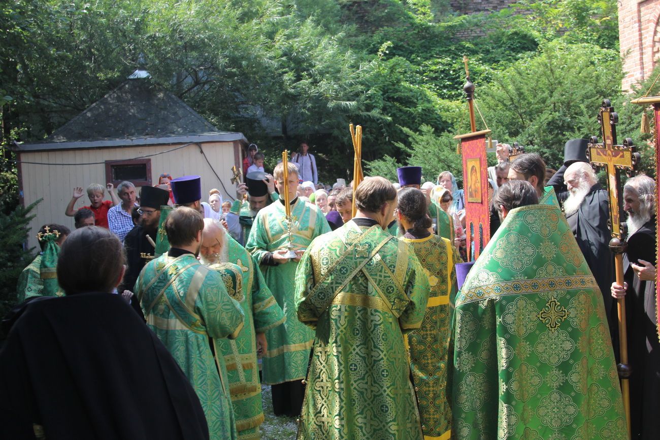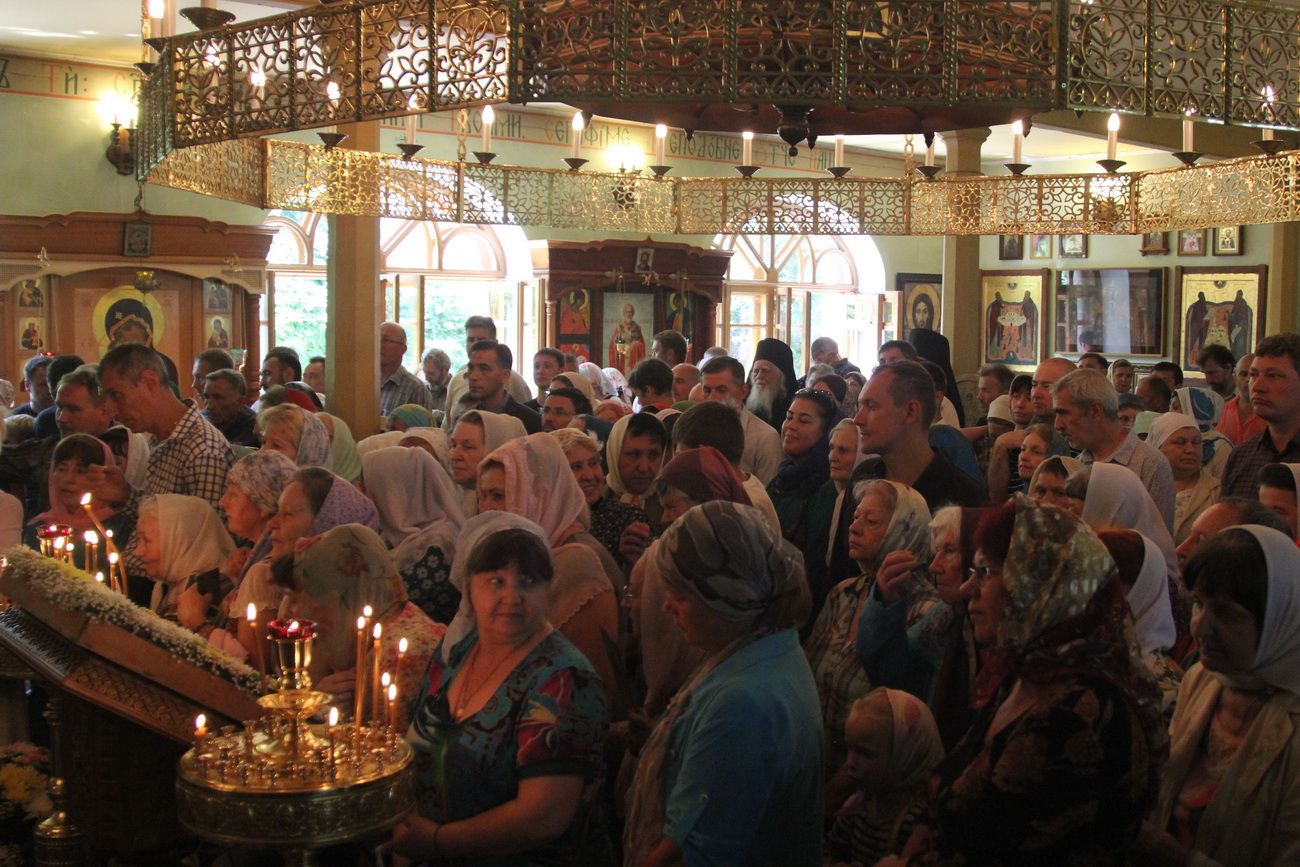 На праздник в монастырь собрались паломники со всей митрополии и других епархий. Храм был полон, кому не хватило места в храме, молились на улице – через настежь открытые окна было всё слышно. Для удобства паломников на лужайке у храма поставили столы с бумагой и ручками, чтобы все могли спокойно написать записки - свечная лавочка монастырского храма маленькая.