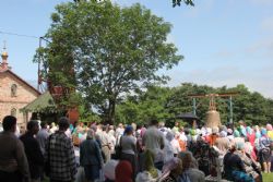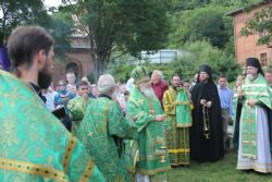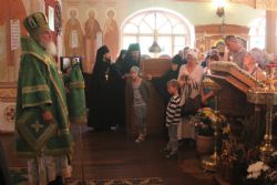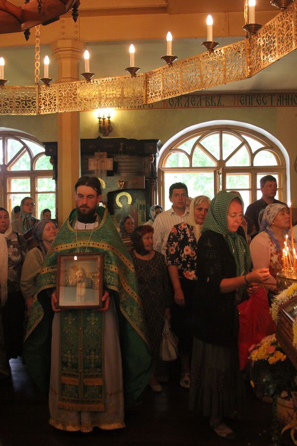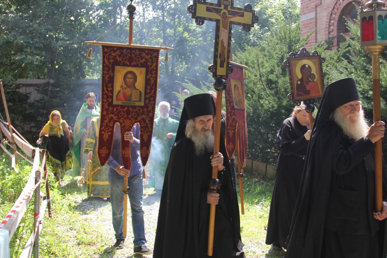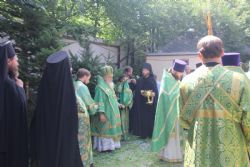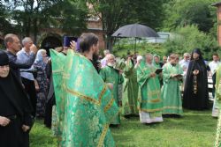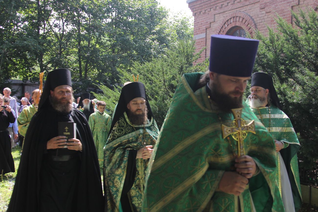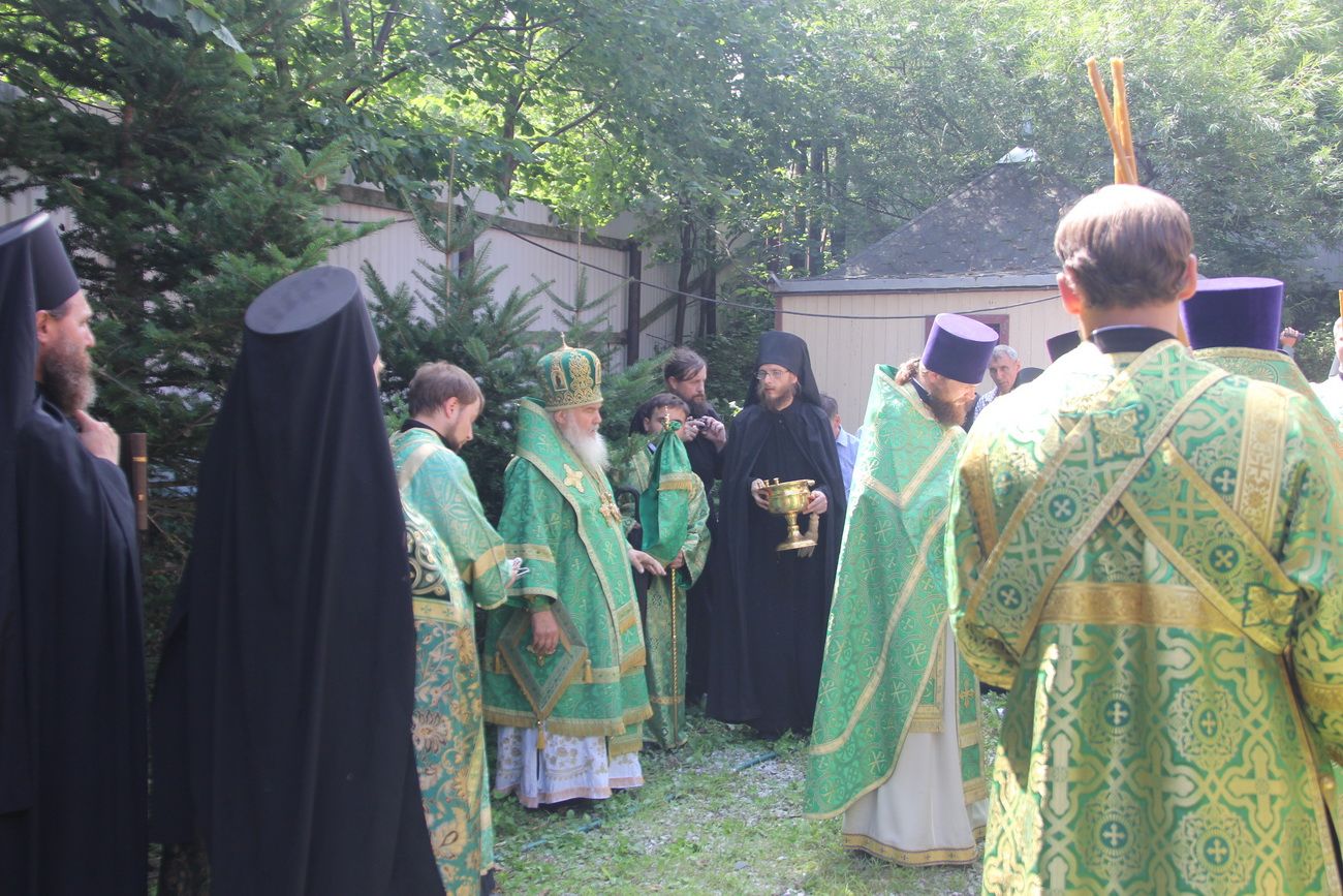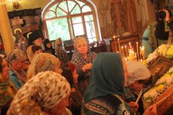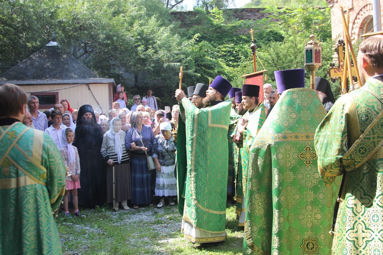 На праздник в монастырь собрались паломники со всей митрополии и других епархий. Храм был полон, кому не хватило места в храме, молились на улице – через настежь открытые окна было всё слышно. Для удобства паломников на лужайке у храма поставили столы с бумагой и ручками, чтобы все могли спокойно написать записки - свечная лавочка монастырского храма маленькая.