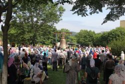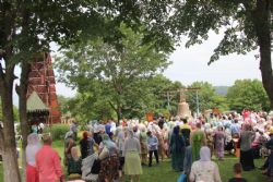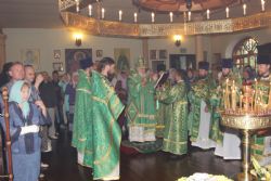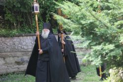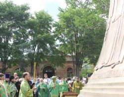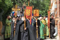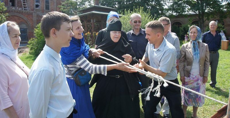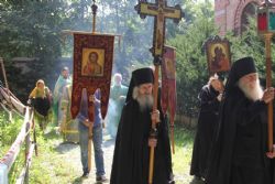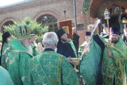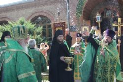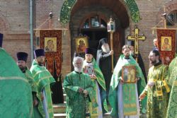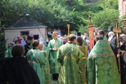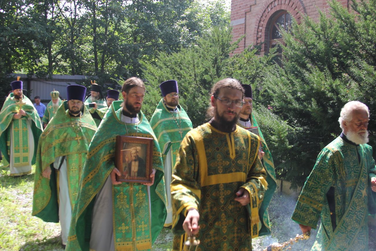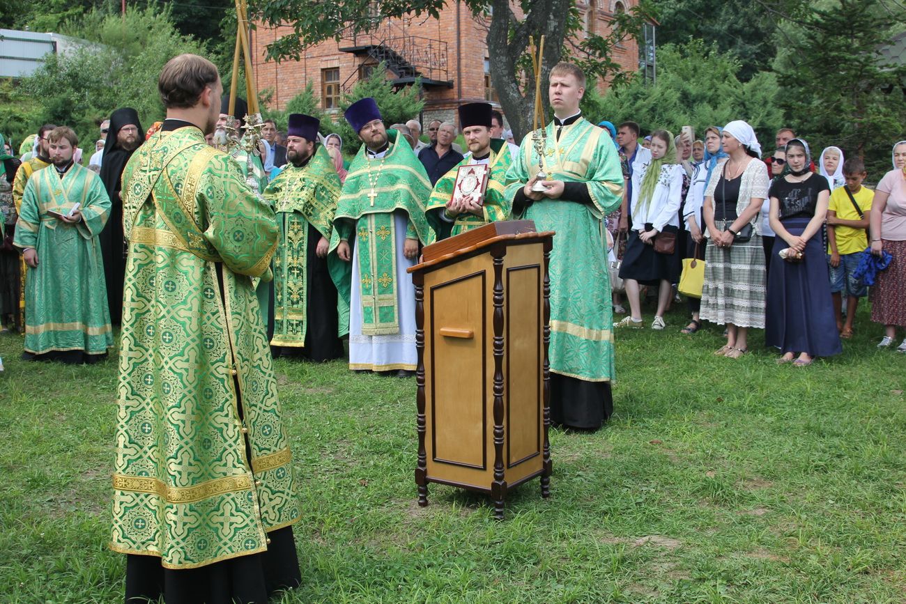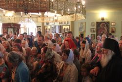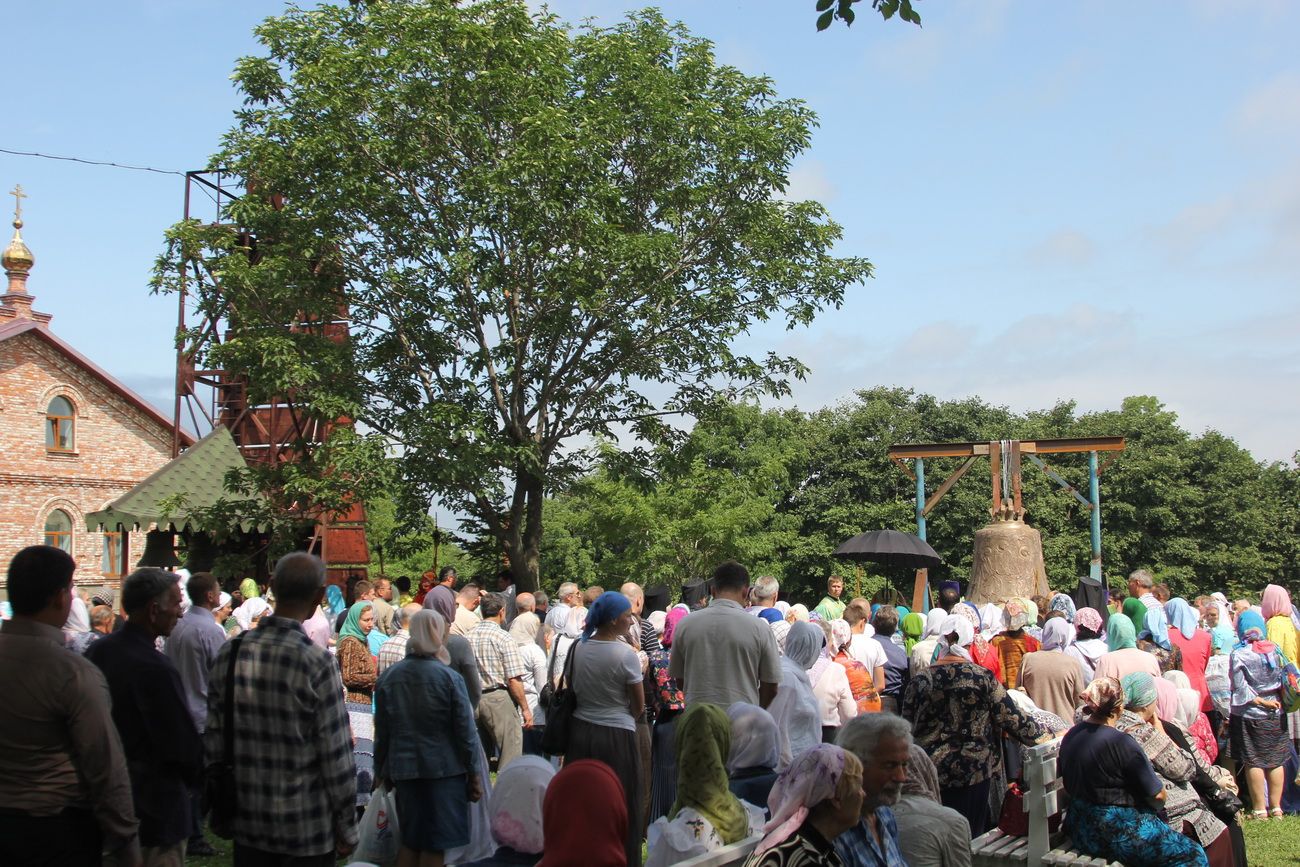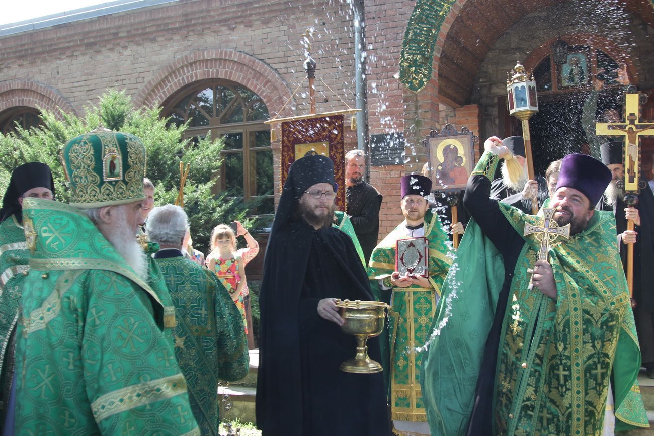 На праздник в монастырь собрались паломники со всей митрополии и других епархий. Храм был полон, кому не хватило места в храме, молились на улице – через настежь открытые окна было всё слышно. Для удобства паломников на лужайке у храма поставили столы с бумагой и ручками, чтобы все могли спокойно написать записки - свечная лавочка монастырского храма маленькая.