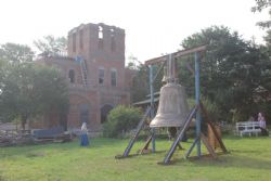 Сейчас строительство подошло к этапу установки главного благовестника, поверх которого должно быть залито перекрытие. Колокол весит 4,8 тонны и язык 200 килограммов.