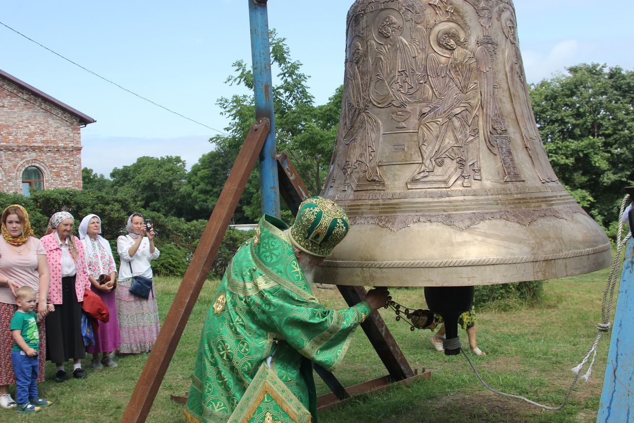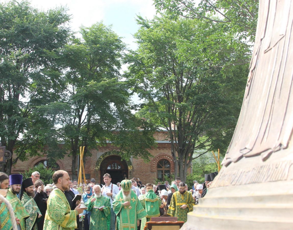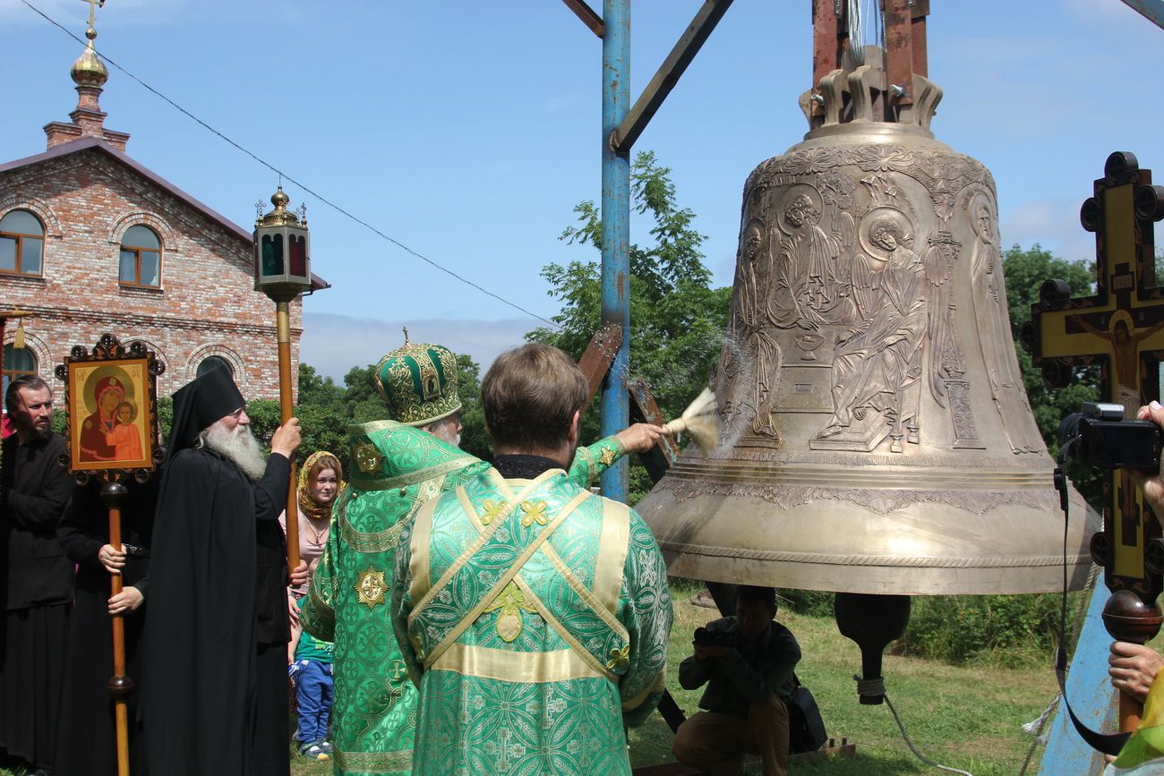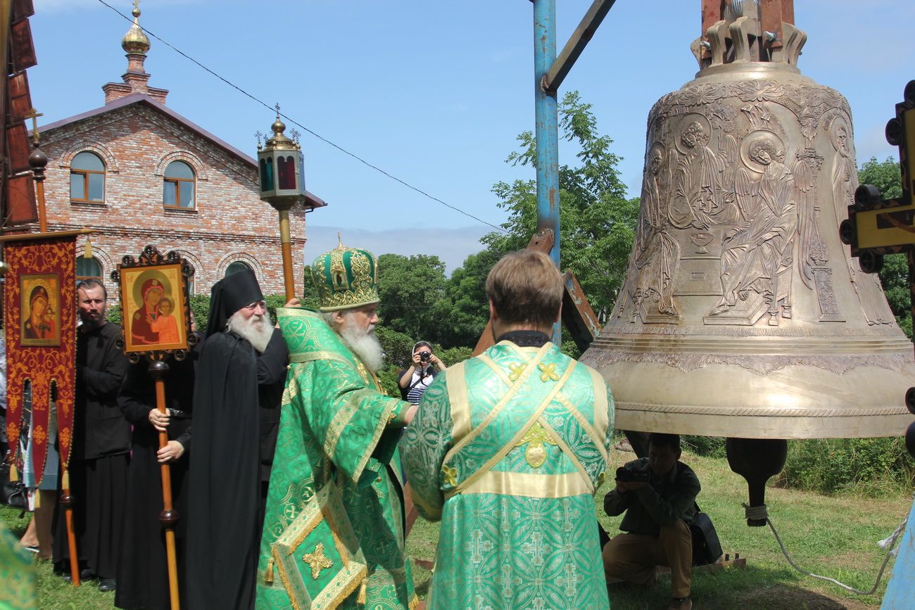 По окончании Божественной литургии митрополит Владивостокский и Приморский Вениамин совершил «Чин благословения кампана» – освящение колокола, главного благовестника для строящейся монастырской колокольни. Далее был совершён крестный ход вокруг монастырского храма святого Серафима Саровского. Обращаясь к паломникам митрополит Вениамин отметил, что этот колокол – самый большой в Приморье, он весит 5 тонн. Колокол заказанный для строящегося Преображенского собора на полтонны меньше. На освящённом колоколе отлиты иконы Святой Троицы, святого преподобного Серафима Саровского, святых Царственных страстотерпцев, и святого благоверного князя Александра Невского.