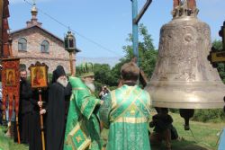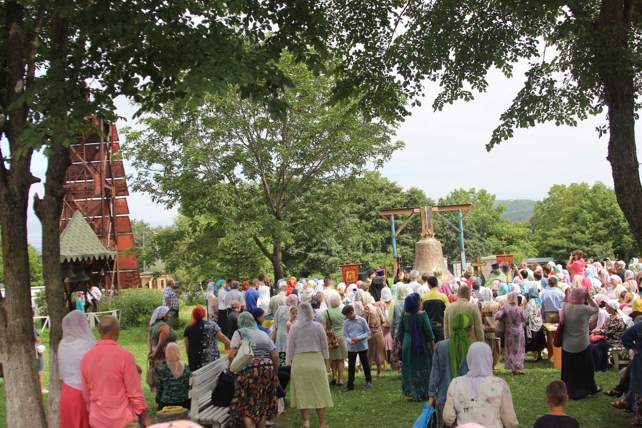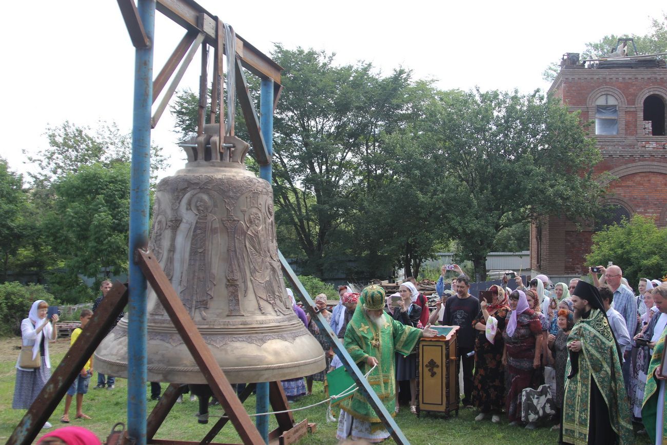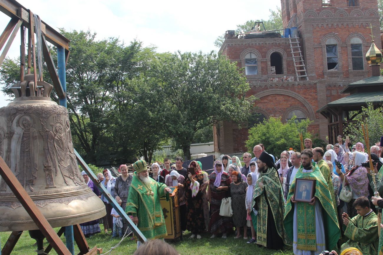 По окончании Божественной литургии митрополит Владивостокский и Приморский Вениамин совершил «Чин благословения кампана» – освящение колокола, главного благовестника для строящейся монастырской колокольни. Далее был совершён крестный ход вокруг монастырского храма святого Серафима Саровского. Обращаясь к паломникам митрополит Вениамин отметил, что этот колокол – самый большой в Приморье, он весит 5 тонн. Колокол заказанный для строящегося Преображенского собора на полтонны меньше. На освящённом колоколе отлиты иконы Святой Троицы, святого преподобного Серафима Саровского, святых Царственных страстотерпцев, и святого благоверного князя Александра Невского.