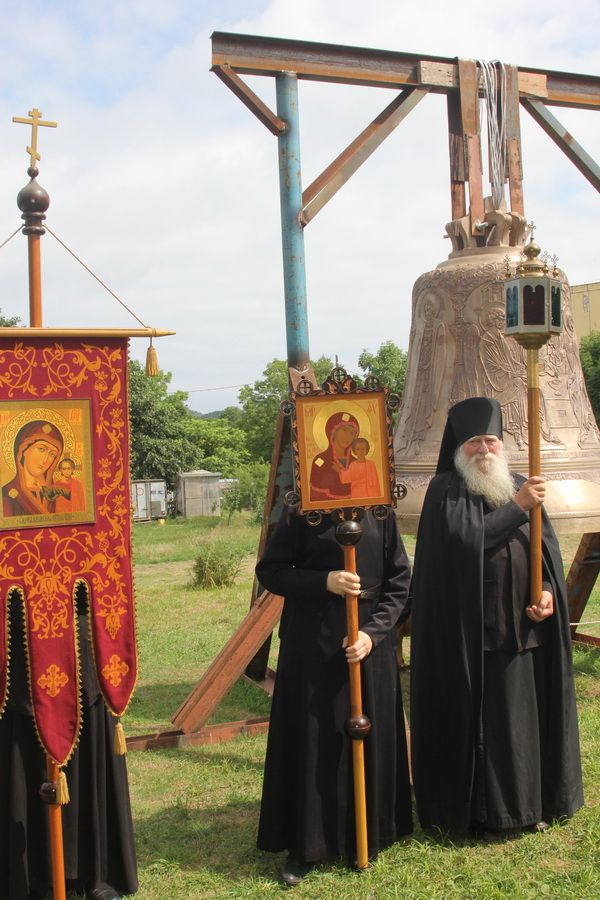 Мы решили установить главный колокол весом почти пять тонн потому, что строим отдельное архитектурное сооружение, колокольню высотой 40 метров, которая будет главным входом в монастырь. В Приморье подобных сооружений нет, и нет больших колоколов. А мы любим наш край и хотим, чтобы здесь такое было! В монастыре молятся о здравии и спасении всех добрых людей, потрудившихся на святое и благое дело – средства на колокол и завершение строительства колокольни мы собирали всем миром. Благословение и милость Господня да пребудет с вами!