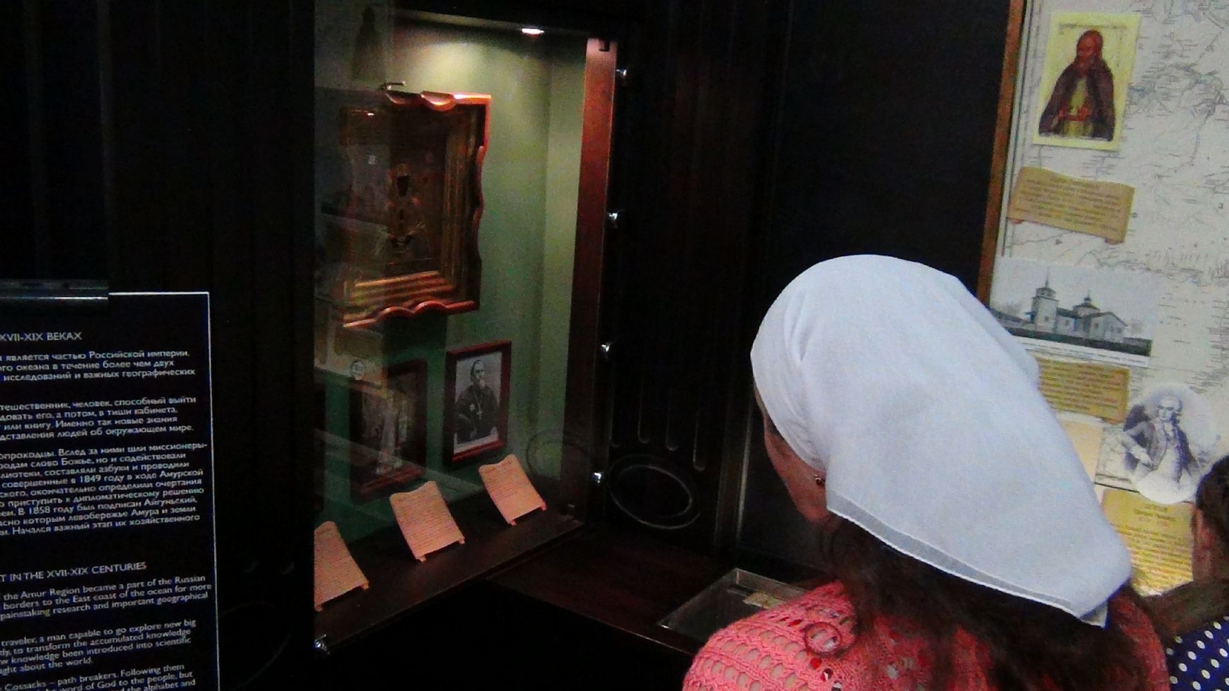 В числе экспонатов выставки — труды святителя Иннокентия Вениаминова, изданные, в частности, в середине XIX века и хранящиеся в книжном фонде Общества изучения Амурского края; уникальные документы, фотохроника, а также подлинные предметы миссионерского быта и церковная утварь XIX века.