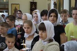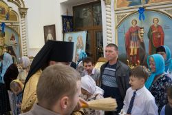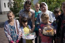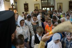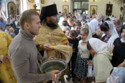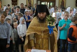 - После воскресной литургии состоялся молебен, посвященный началу учебного года. В храме особенно много было деток школьного возраста - наших маленьких прихожан. А ещё пришли школьники Уссурийского детского дома, над которым наш храм вот уже четыре года назад взял шефство. Торжественные слова молитвы, сердечные поздравления батюшек, окропление святой водой. Несомненно, Божья Благодать коснулась их сердец. Раз в неделю сестры милосердия посещают детский дом, оказывают посильную помощь, приносят подарки, сладости и фрукты. В этом году двое деток из этого детского дома впервые переступили порог школы - стали первоклассниками. От прихода им подарили школьную форму и ранцы. А одному мальчику - Володе Иванову- в этот день исполнилось 14 лет. С днем рождения его поздравили и вручили подарок мячик и спортивную сумку. Для детей устроили сладкий стол. В этот день в храме можно было увидеть людей с ограниченными возможностями - инвалидов из Уссурийского Реабилитационного Центра. Некоторые из них в этот день приняли Святое Причастие. И над этой организацией наш храм шефствует: регулярно посещают их прихожане, помогают.