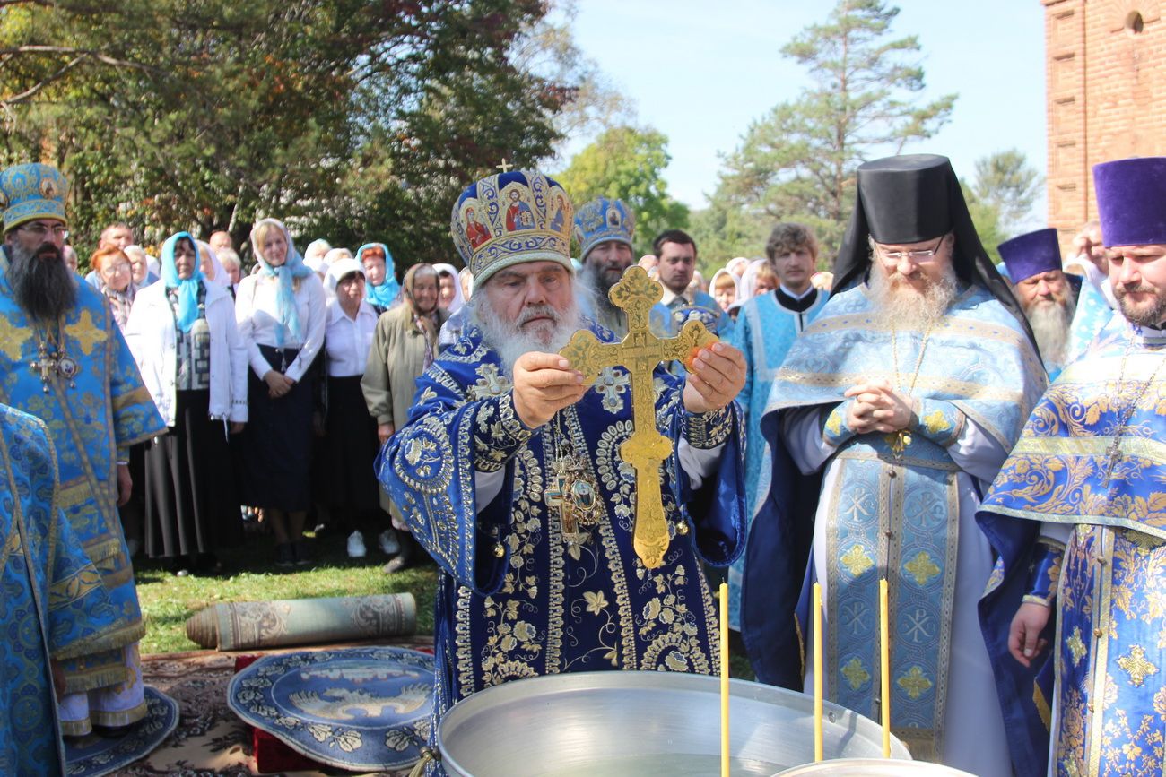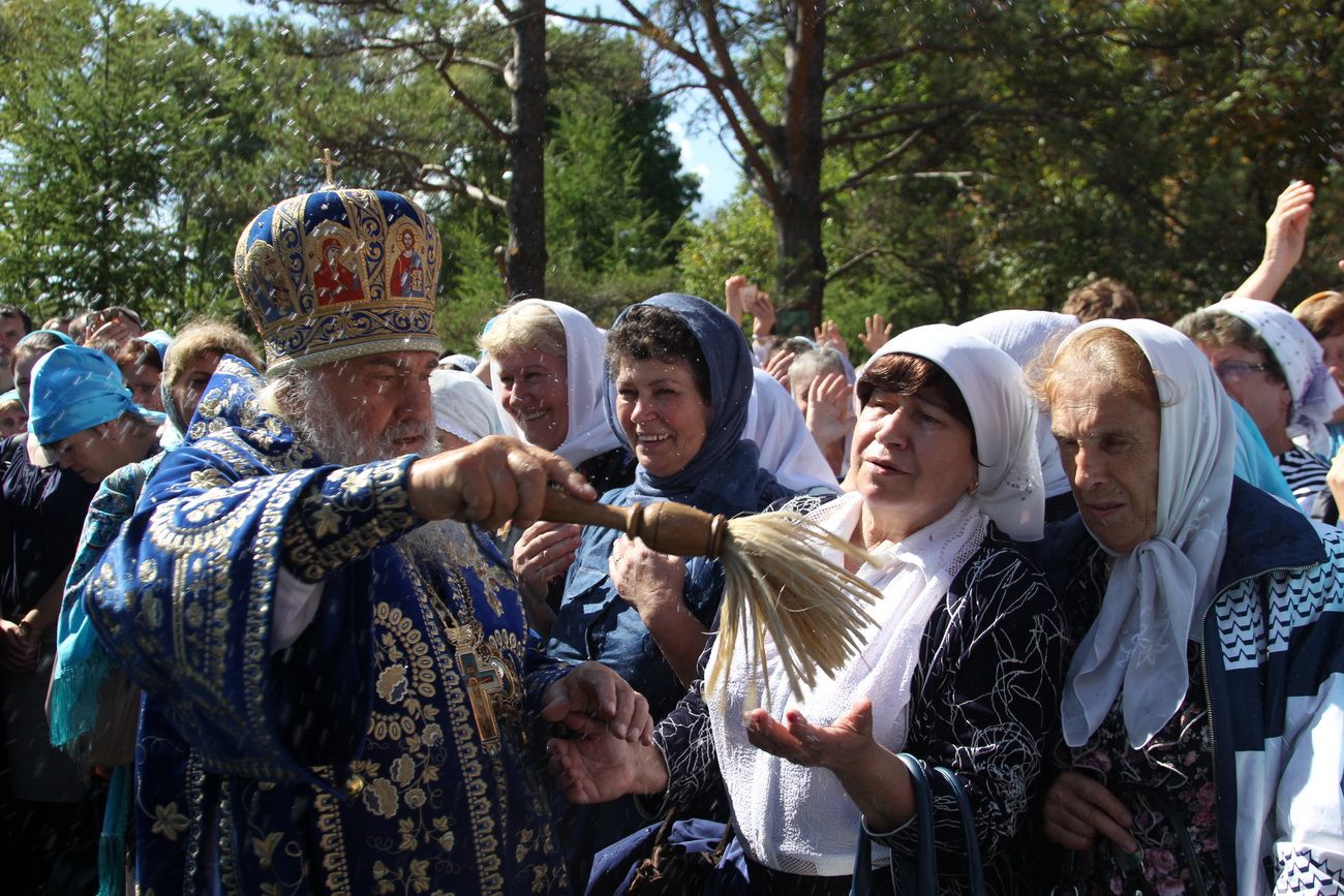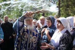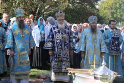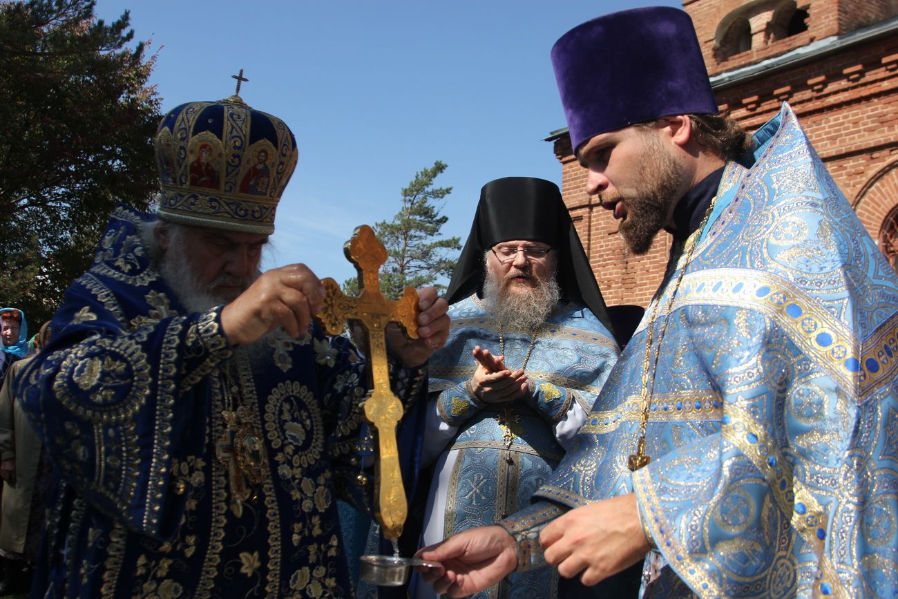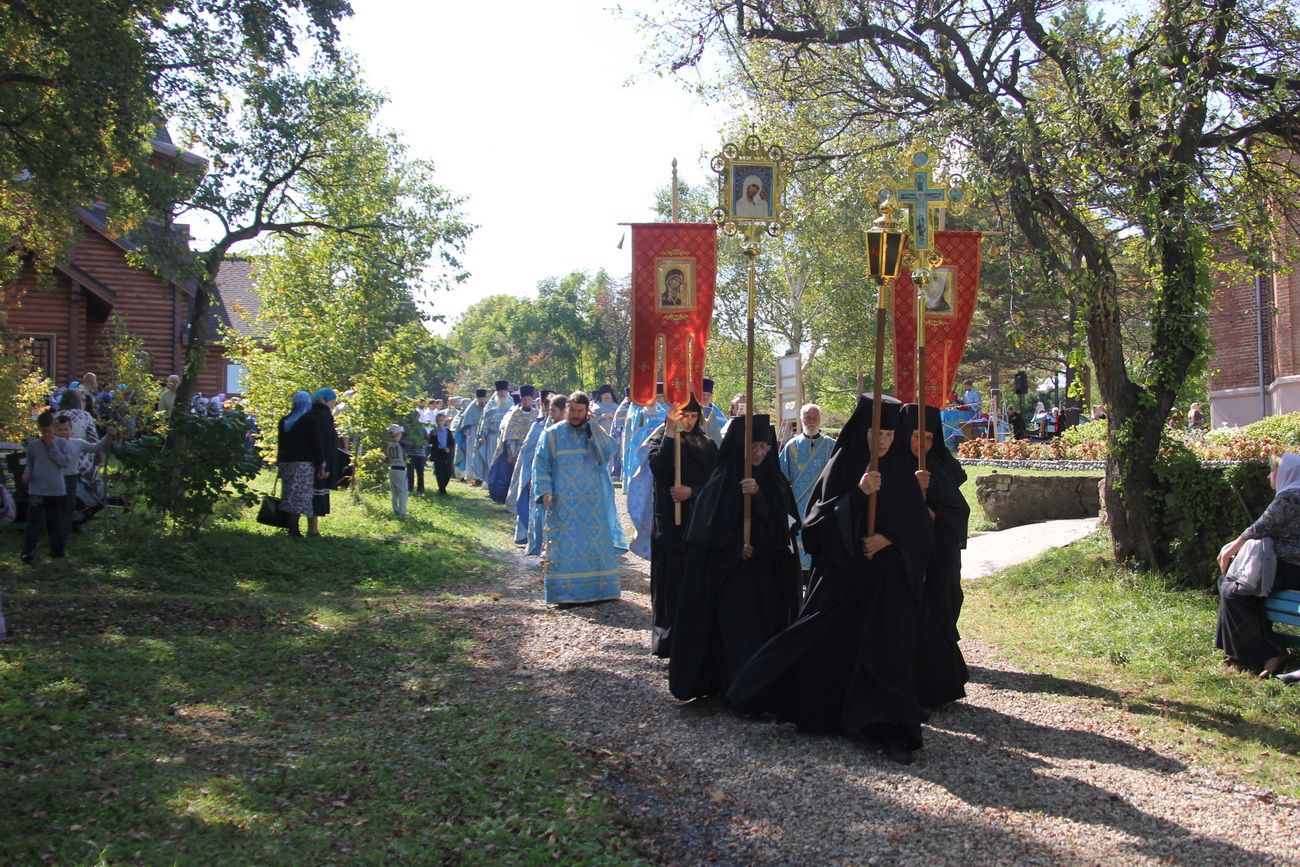 Праздничная литургия была очень торжественна. Было много причастников – причащались из 7 чаш. После литургии был совершен водосвятный молебен, состоялся традиционный Крестный ход – теперь уже вокруг двух храмов обители. Архиереи и священнослужители окропили святой водой и монастырь, и православный люд.