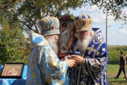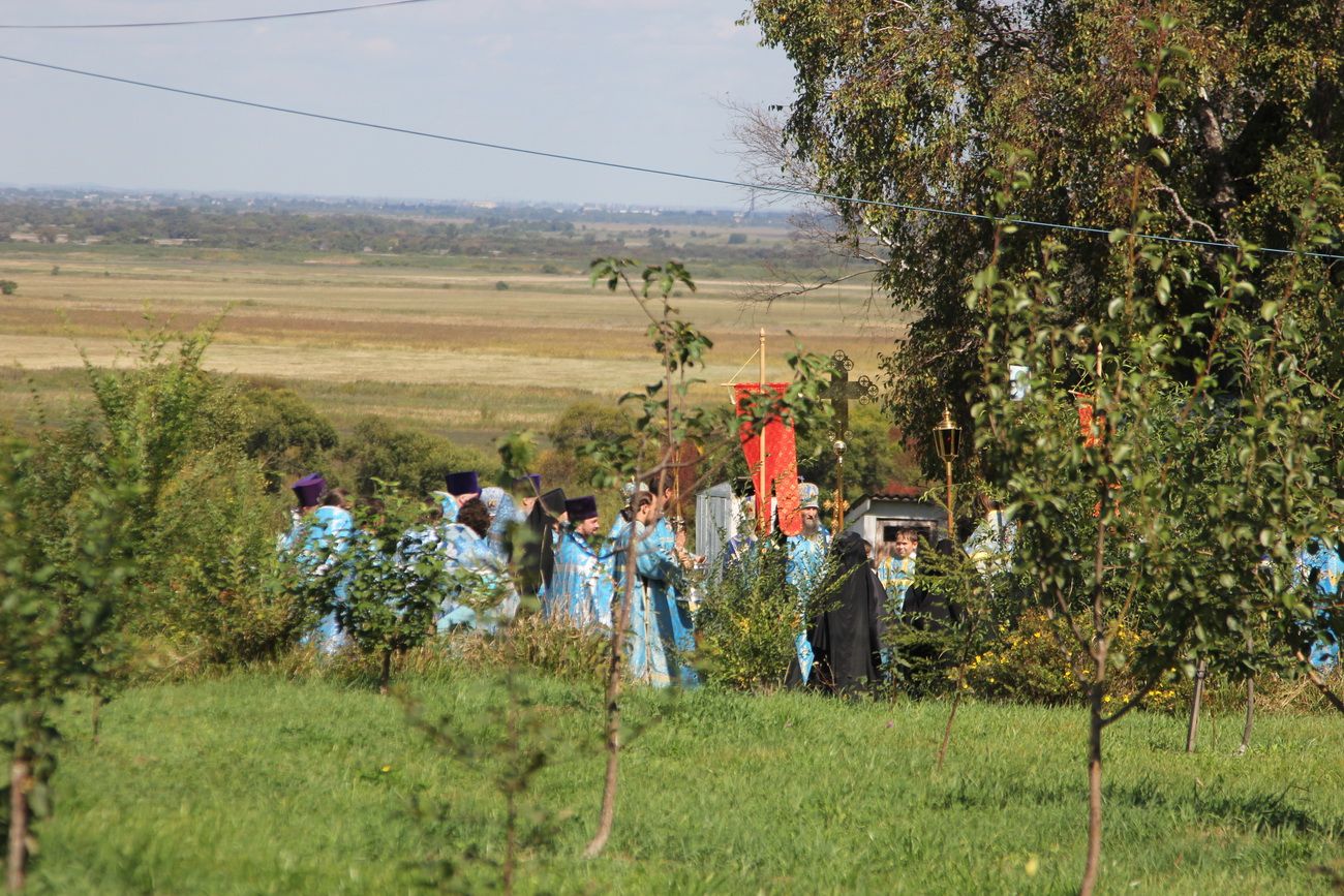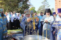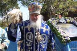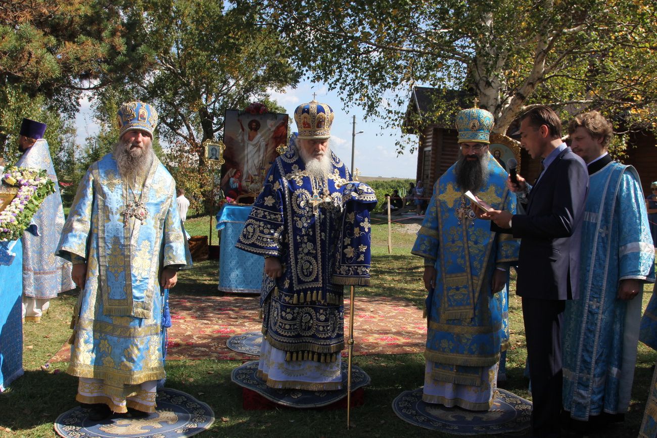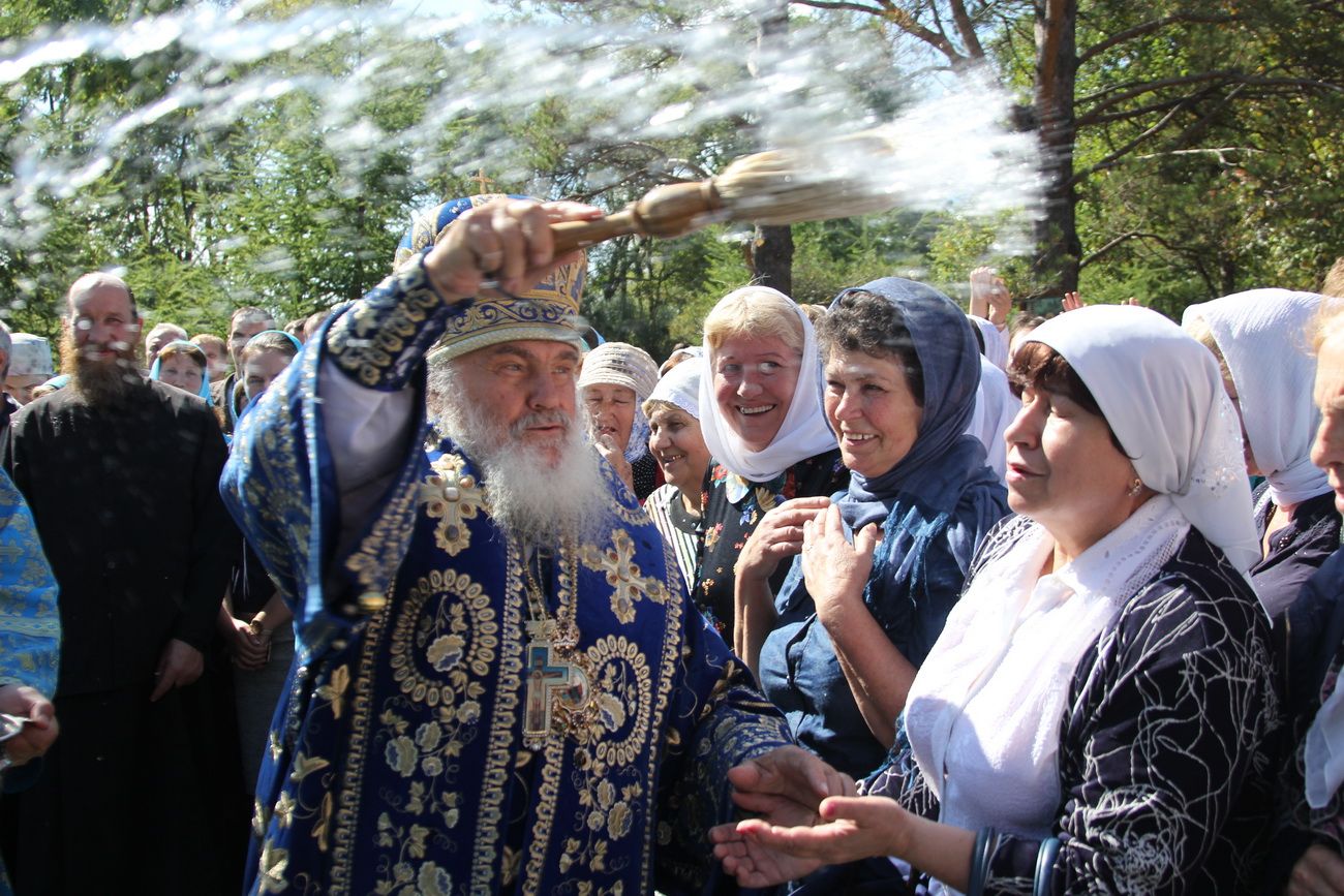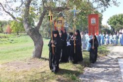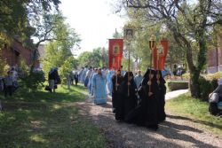 Праздничная литургия была очень торжественна. Было много причастников – причащались из 7 чаш. После литургии был совершен водосвятный молебен, состоялся традиционный Крестный ход – теперь уже вокруг двух храмов обители. Архиереи и священнослужители окропили святой водой и монастырь, и православный люд.