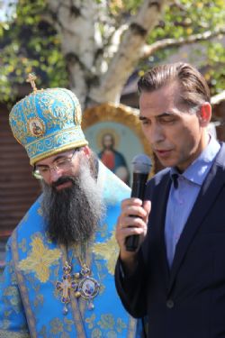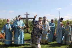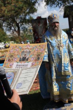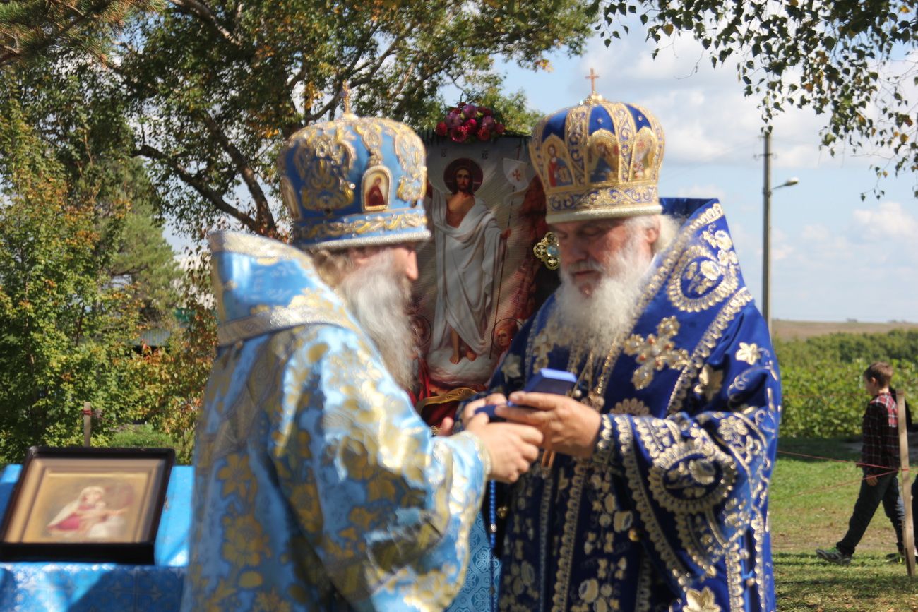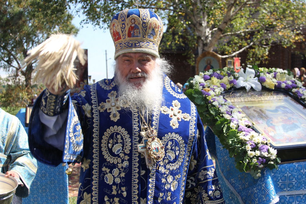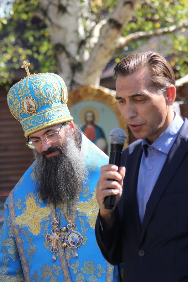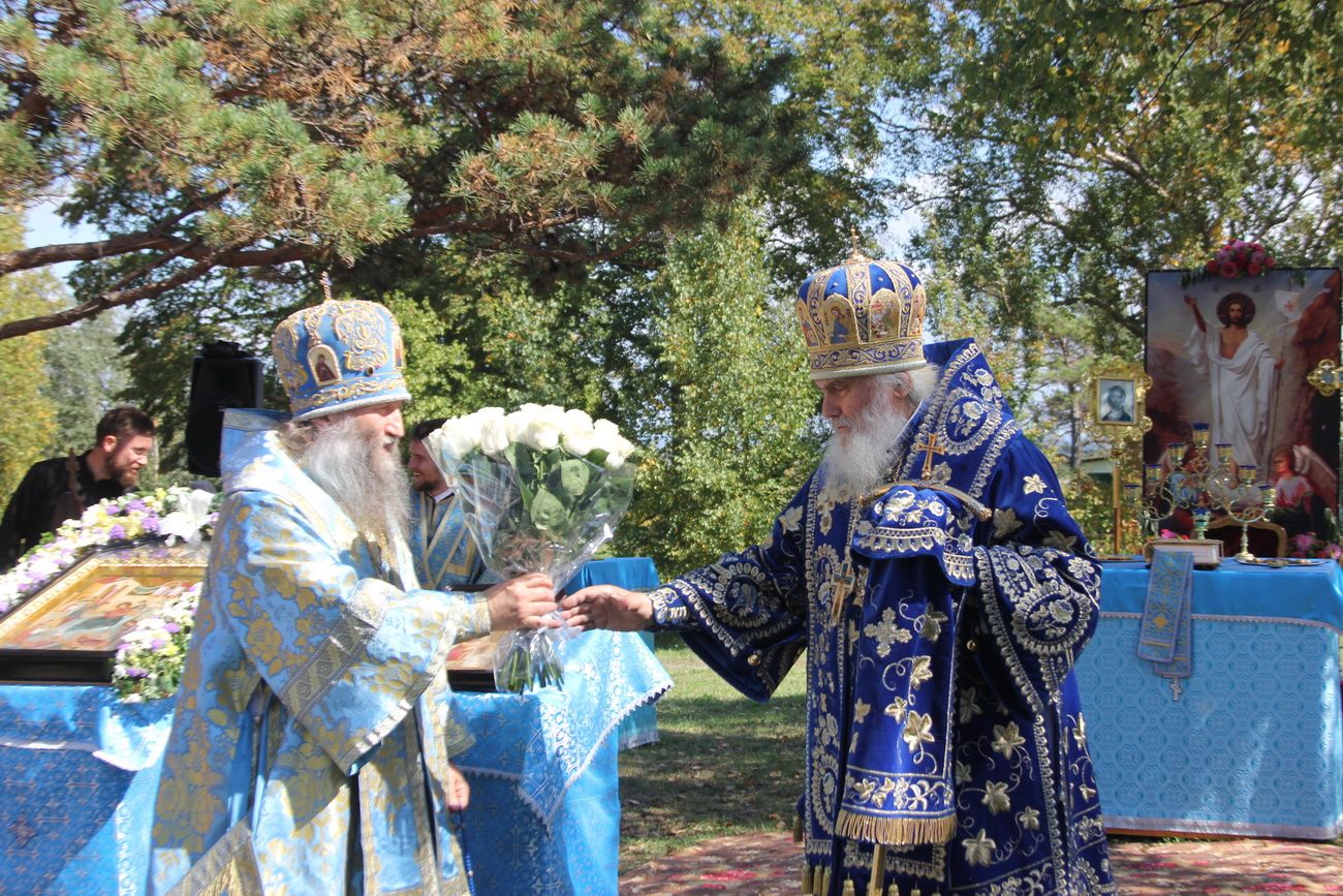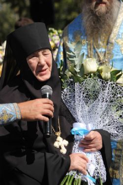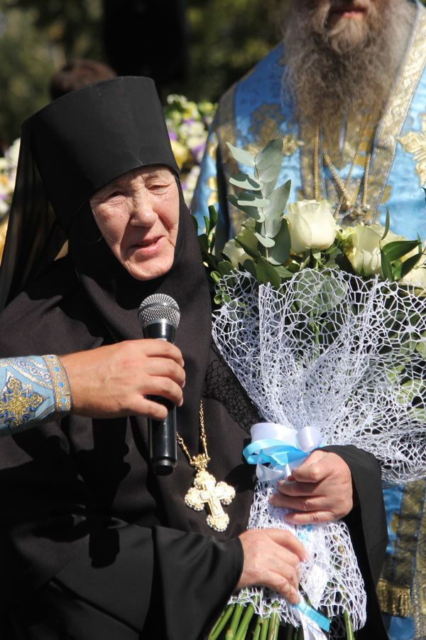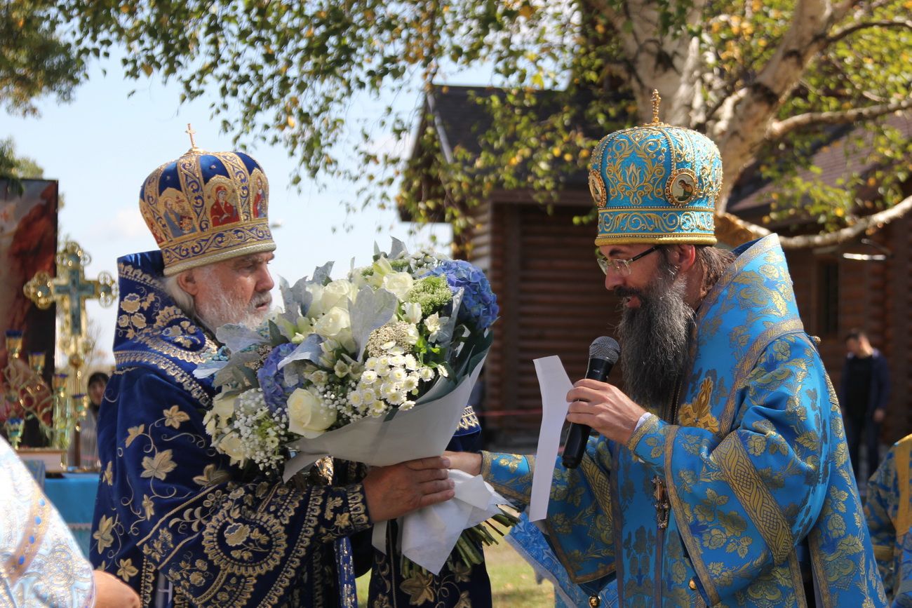 Когда Крестный ход вернулся на площадь, где служили Божественную литургию, митрополита Вениамина поздравили с юбилеем хиротонии, игумению Варвару (Волгину), настоятельницу Богородице-Рождественского монастыря – с престольным праздником.