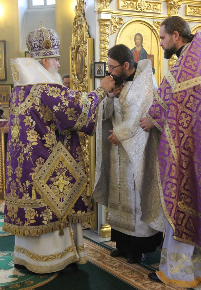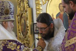 За богослужением Высокопреосвященнейший владыка рукоположил в сан пресвитера иеродиакона Ермогена (Крещенко). Практику священнослужения в пресвитерском сане иеромонах Ермоген будет проходить в Покровском кафедральном соборе. Сергею Васильевичу Крещенко 35 лет, окончил в 2014 году Владивостокское Духовное училище.