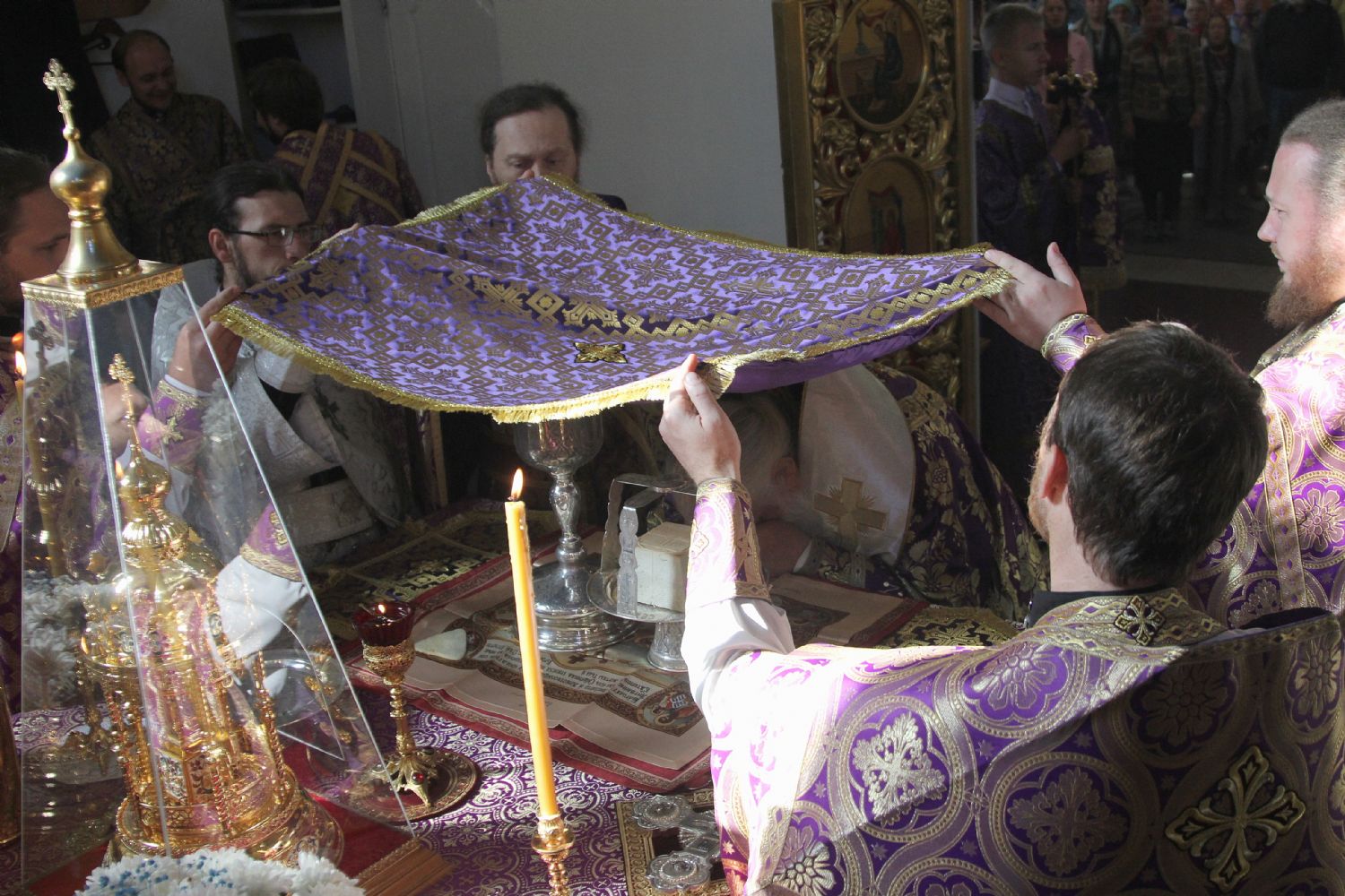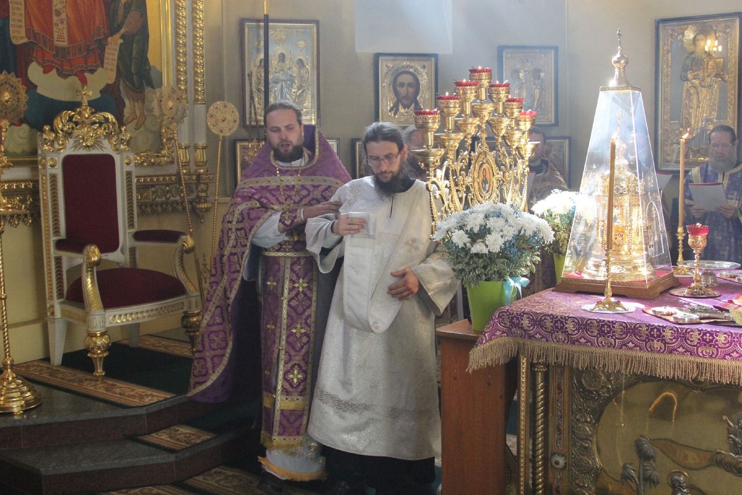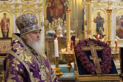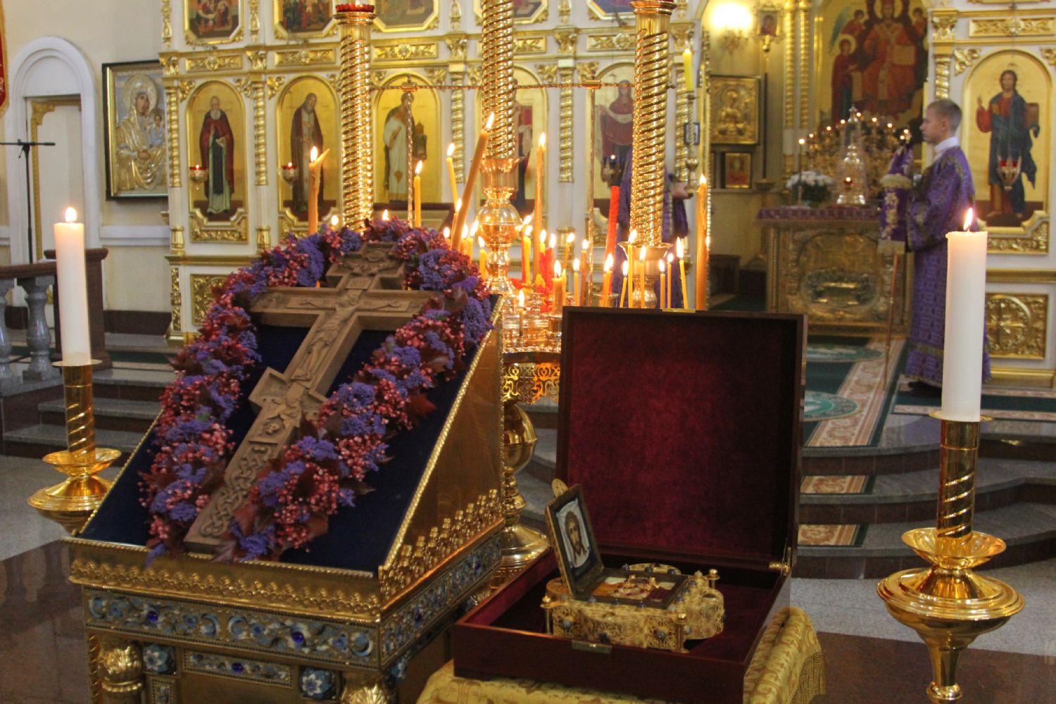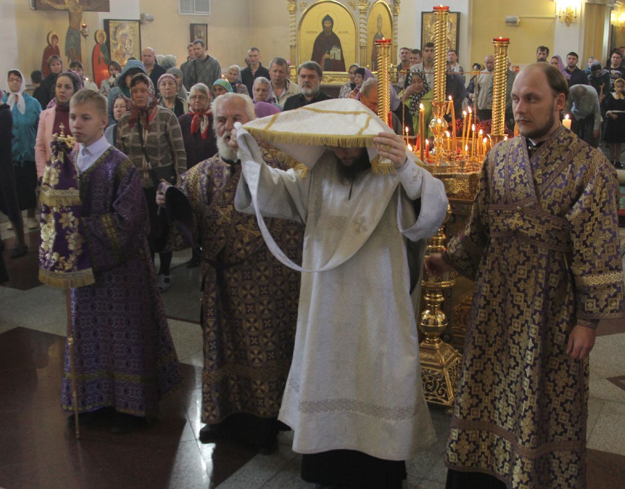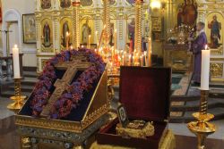 По случаю праздника Крестовоздвижения к молящимся был вынесен для почитания ковчежец с великой святыней — частицей Святого Животворящего Креста Господня и частицей Тернового Венца, доставленный во Владивосток из храма Святой Живоначальной Троицы в Останкино (г.Москва) в прошлом году, накануне Страстной седмицы.
