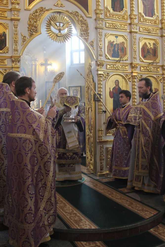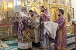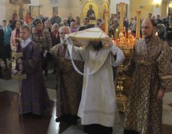 Митрополит Владивостокский и Приморский Вениамин возглавил служение Божественной литургии в Покровском кафедральном соборе. Его Высокопреосвященству сослужили: благочинный I округа Владивостокской епархии протоиерей Димитрий Федорин; благочинный Покровского собора игумен Тихон (Иршенко); благочинный Никольского собора игумен Алексий (Несмеев); духовенство епархии.