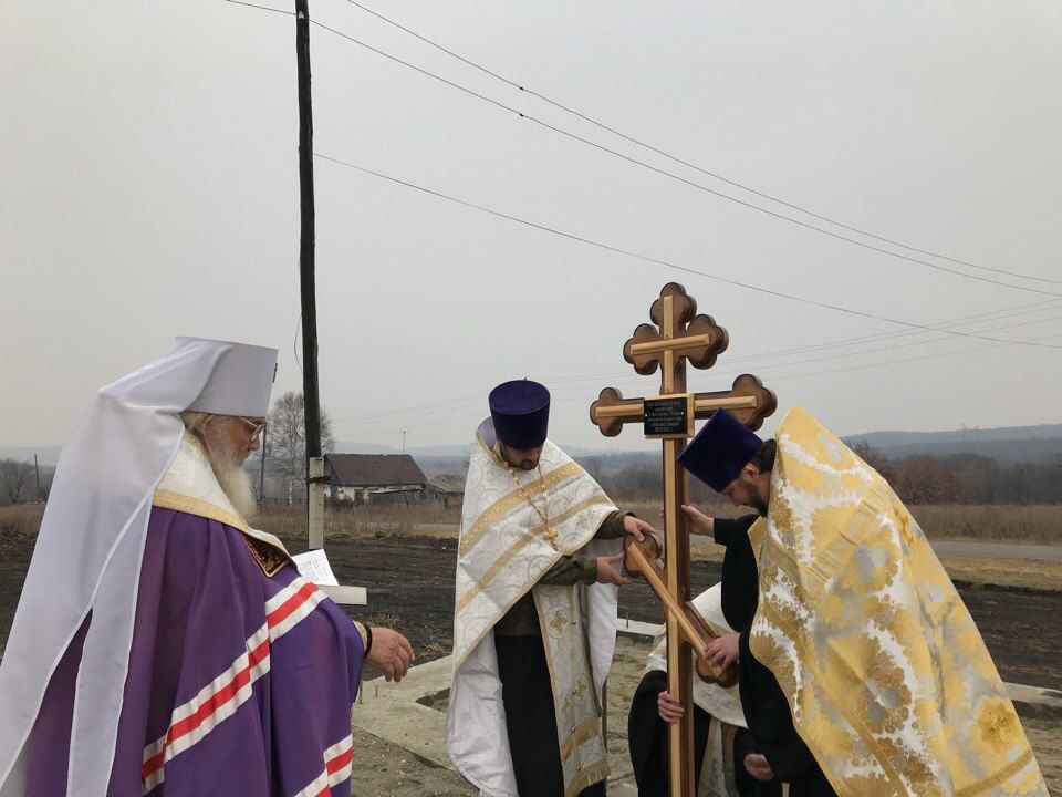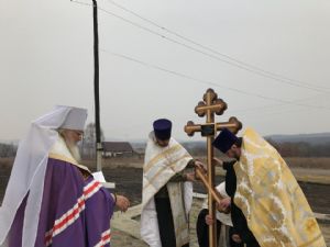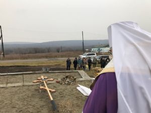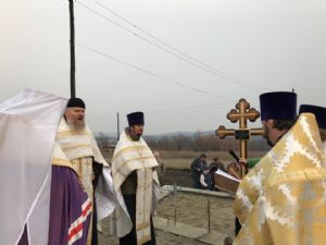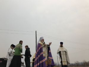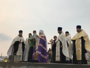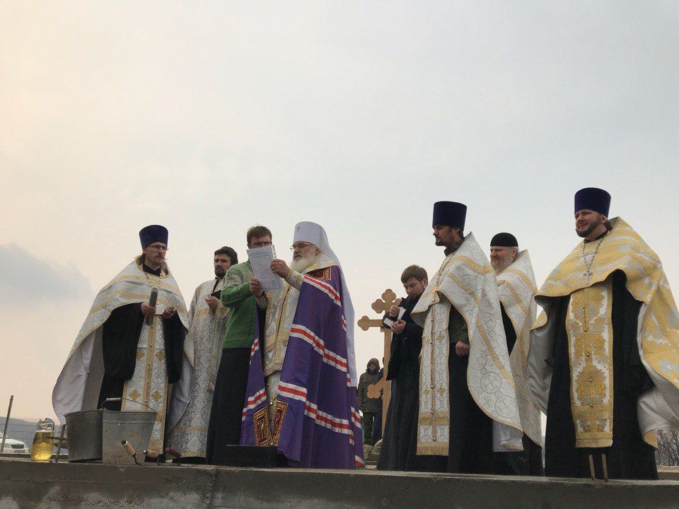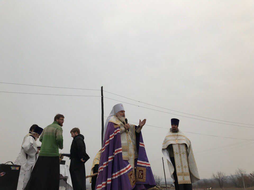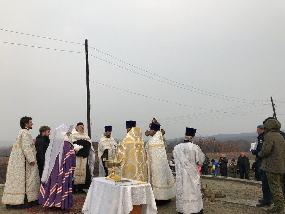 Здесь Его Высокопреосвященство в сослужении духовенства совершил чин на основание нового храма в честь святой мученицы Татианы.