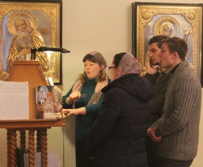 По окончании Литургии владыка Иннокентий совершил славление перед иконой святой мученицы Татианы и обратился к студентам, участникам праздника с архипастырским словом. В частности, он поздравил с праздником студентов Духовного центра, студентов ДВФУ, изучающих теологию, а также всех, кто получает образование в других учебных заведениях. Его Преосвященство поздравил с Днем именин Т.П. Балановскую, регента Казанского храма Владивостока, руководившую хором за богослужением.