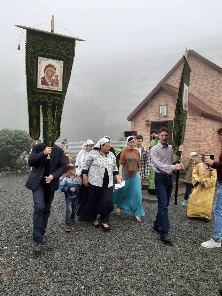 По завершении Литургии состоялся крестный ход по территории храма с иконой небесного покровителя.