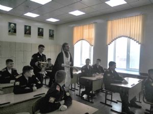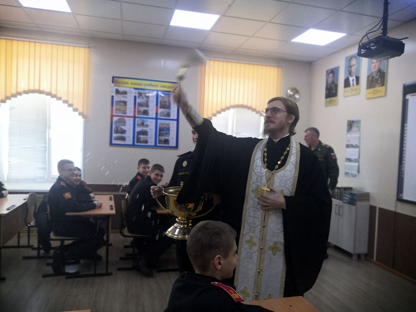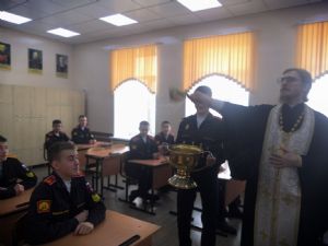 Уссурийск. 20 января ответственный за строительство храма в Уссурийском Суворовском училище священник II благочиния иерей Павел Моисеев провёл встречу с воспитанниками 4-й роты. Во время общения батюшка в наглядной форме поведал суворовцам о евангельской истории и духовном смысле праздника Крещения, открыл перед ребятами мир церковных традиций его празднования.