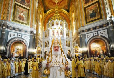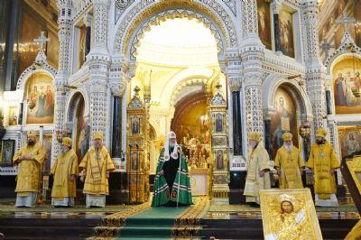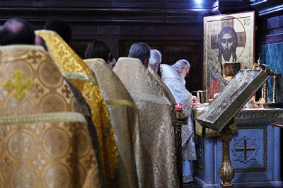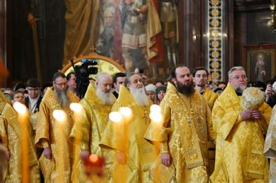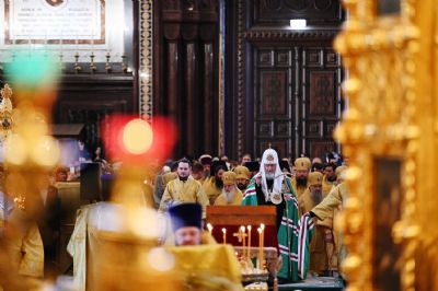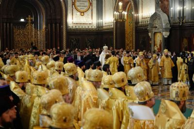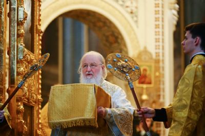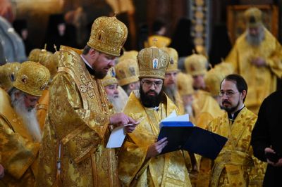 Перед началом работы XXVIII Международных Рождественских чтений митрополит Владимир сослужил Святейшему Патриарху Кириллу за Божественной литургией в Храме Христа Спасителя