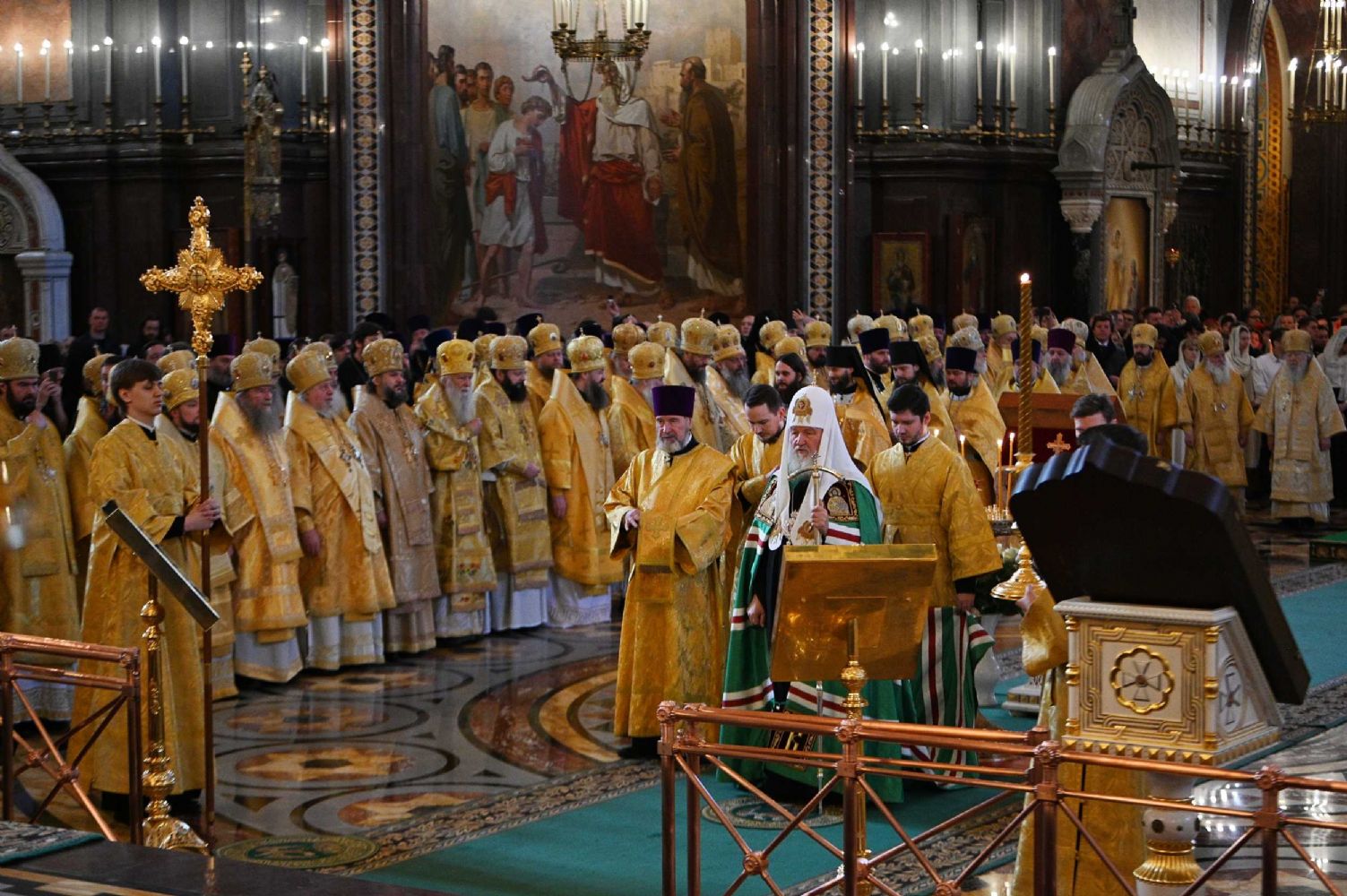 Богослужение транслировалось в прямом эфире на телеканалах «Союз» и «Спас».