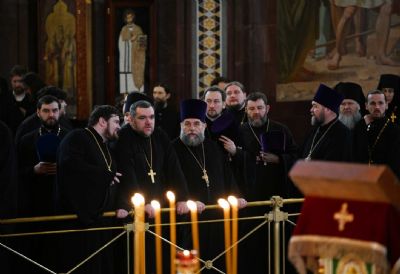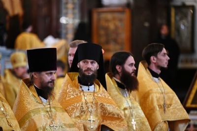 Богослужебные песнопения исполнил Патриарший хор Храма Христа Спасителя (регент И.Б. Толкачев).