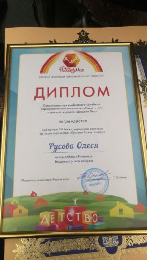 Средства на поездку в Москву на церемонию награждения и на экскурсию в Санкт-Петербург Олесе Русовой и её маме выделил митрополит Владивостокский и Приморский Владимир.