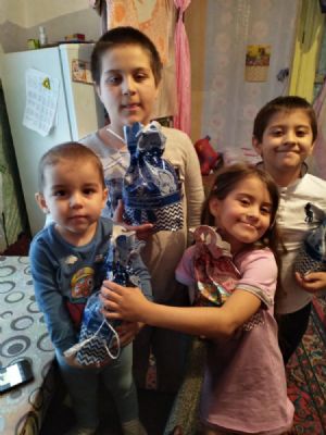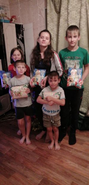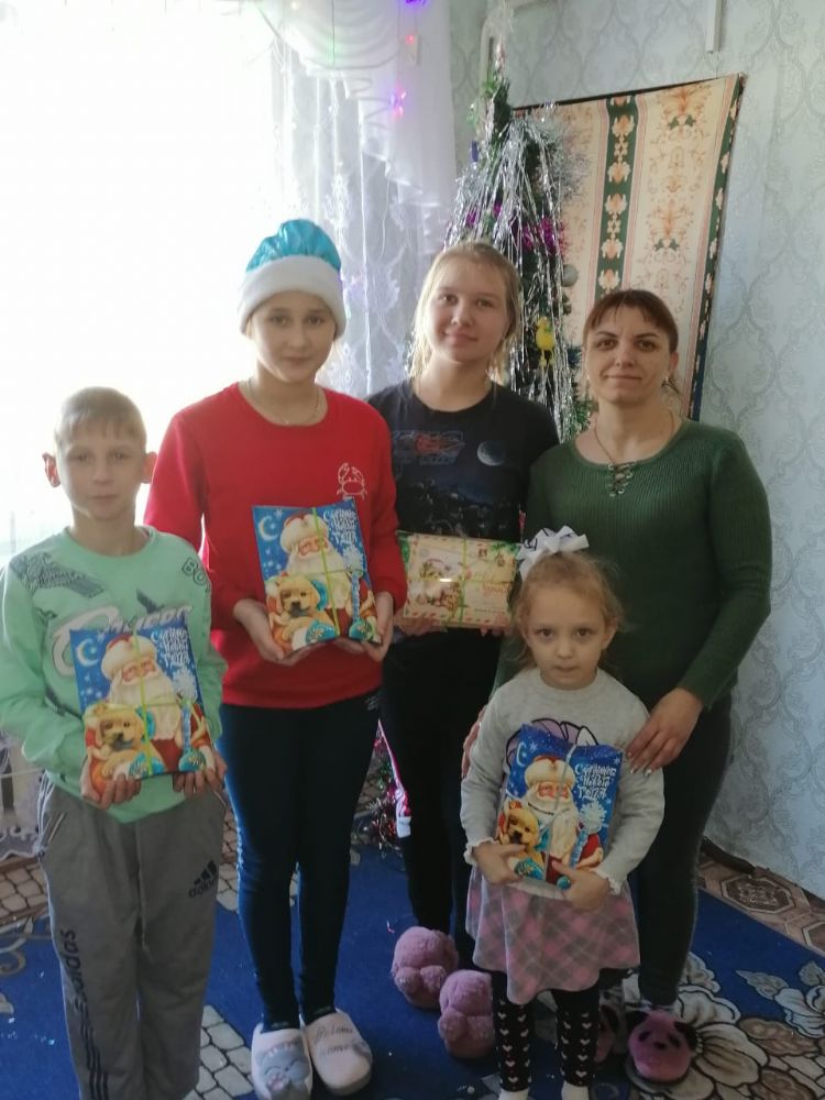 Индивидуальные сладкие подарки получили детки из сел Октябрьского района. Это детки из многодетных, малообеспеченных не полных семей, семьи, воспитывающие ребёнка с особенностями развития, находящихся на патронаже Центра «Колыбелька» с. Покровка.