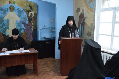 С докладом о деятельности прихода в 2019 году выступил ключарь собора иеромонах Иоанн (Костин).