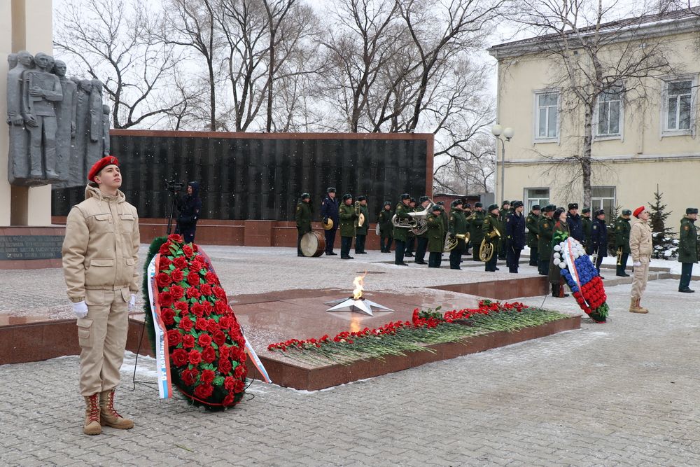 21 февраля, в канун Дня защитника Отечества, настоятель прихода храма преподобного Серафима Саровского протоиерей Григорий Цуркан и клирик прихода храма Покрова Пресвятой Богородицы иерей Павел Моисеев приняли участие в церемонии возложения цветов к мемориальному комплексу «Воинам-уссурийцам, погибшим в годы Великой Отечественной войны».