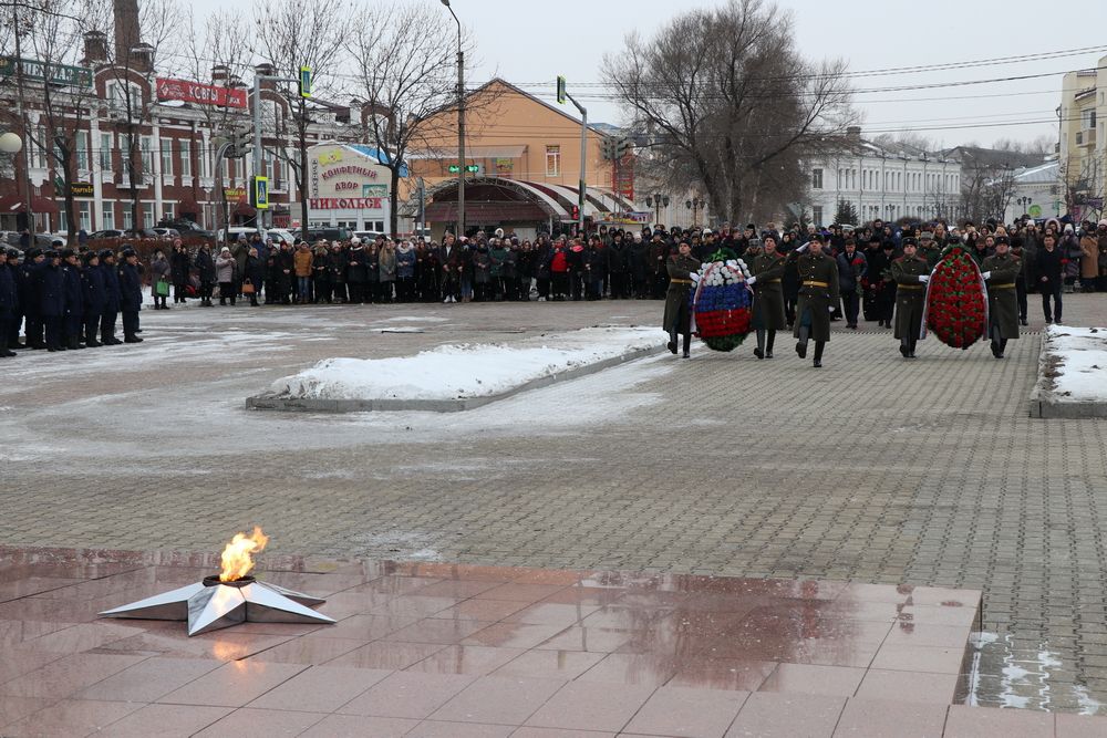 В память о павших уссурийцах была объявлена минута молчания. Прозвучал ритуальный оружейный салют. В завершение церемонии по площади Победы торжественным маршем прошли воины Уссурийского гарнизона.