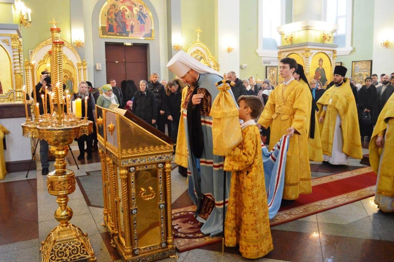 Богослужебные песнопения исполнил Митрополичий хор Покровского собора под управлением регента Елены Левада.