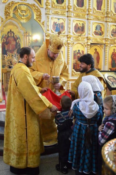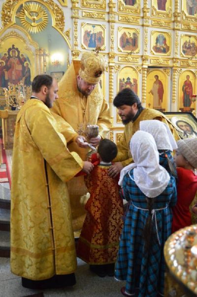 Архипастырь поздравил прихожан с воскресным днем, причастников — с принятием Святых Христовых Таин и преподал благословение.