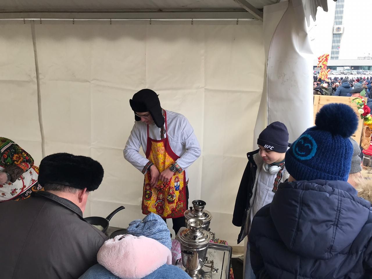 Большое гулянье развернулось на площади. Молодые люди подготовили множество игр для самых маленьких горожан и веселые хороводы для самых взрослых. Ребята не только организовали замечательную фотозону, но и провели мастер-класс по выпечке блинов.