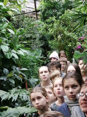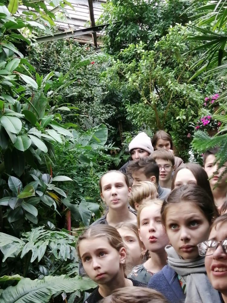 Средний класс отправился на урок в Ботанический сад, на первое занятие по ботанико-просветительской программе БСИ ДВО РАН «Библейская ботаника». На этом занятии дети побывали на экскурсии в оранжерее. Здесь состоялось знакомство с растениями, упомянутыми в Священных Писаниях и иконописи. Рассказано об истории их распространения и значение для человека. Занятие проводила специалист по эколого-ботаническому просвещению Н. В. Киршова. Закончился урок возвращением в воскресную школу и присоединением к всеобщему празднику.