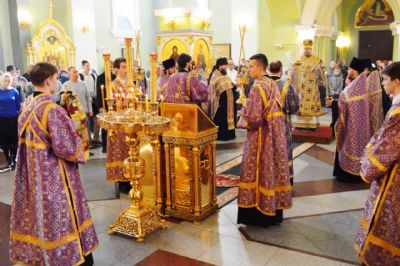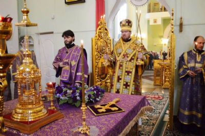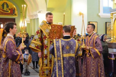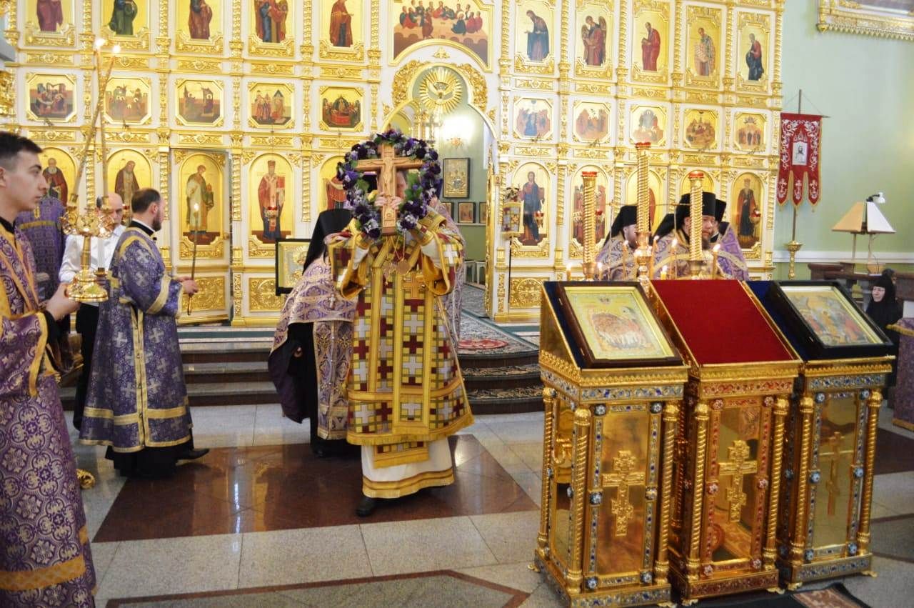 По окончании богослужения владыка Владимир поздравил молящихся с кануном недели Крестопоклонной и преподал архипастырское благословение.