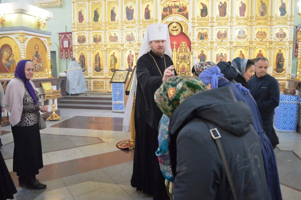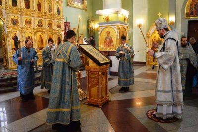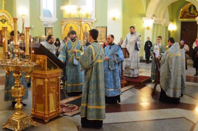 В канун праздника Похвалы Пресвятой Богородицы митрополит Владимир возглавил утреню в Покровском соборе